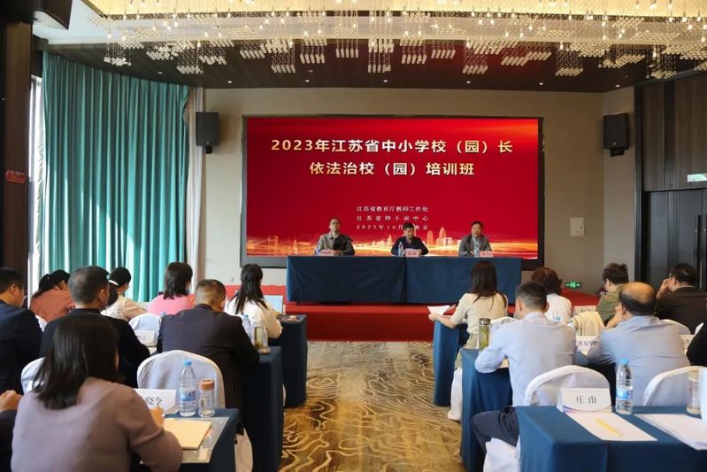 为认真学习宣传贯彻党的二十大精神,深入贯彻落实习近平法治思想,深化依法治校、依法治教、依法办学,充分发挥法治教育在立德树人中的重要作用,10月11日上午,2023年全省中小学校(园)长依法治校(园)培训班(第一批)在南京举行。省教育厅政策法规处处长王兵、省师干训中心副主任陈玉乔、校长发展部主任回俊松出席开班仪式,来自全省百余位校(园)长参加研修。