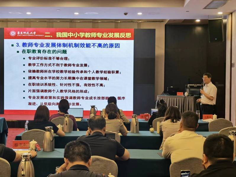 习近平总书记在全国教育大会上指出:“坚持把教师队伍建设作为基础工作。”本次活动在对前期开展的“培养对象学校诊断调研”“同伴互学互评”的数据进行分析,对培养对象的“学校诊断报告”进行梳理的基础上,确定此次研修主题为“校长与教师专业发展”。活动采取专题讲座、交流研讨等形式,在“明确校长是教师专业发展的促进者”“把握教师专业发展的理论研究成果”“形成引领教师专业发展的路径策略”方面为培养对象提供专业支持。