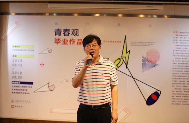 开幕式上播放了美院退休老教授们给毕业生们寄语的视频,毕业生代表和教师代表分别发言。王仁雷致辞,并宣布毕业作品展开幕。