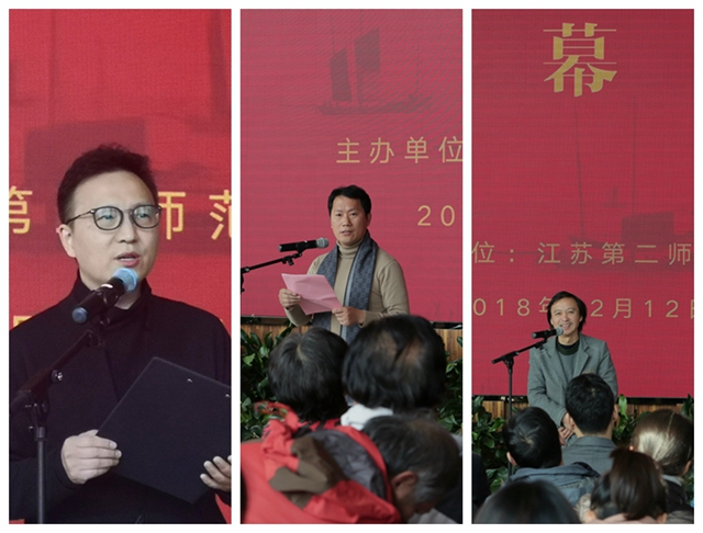 王建致开幕辞。诸敏为我校张广才教授、孙仕荣副教授、余燕副教授、刘方副教授、张迪老师、张诗卉老师、李楚洋老师颁发江苏大剧院收藏证书。王仁雷宣布开幕。