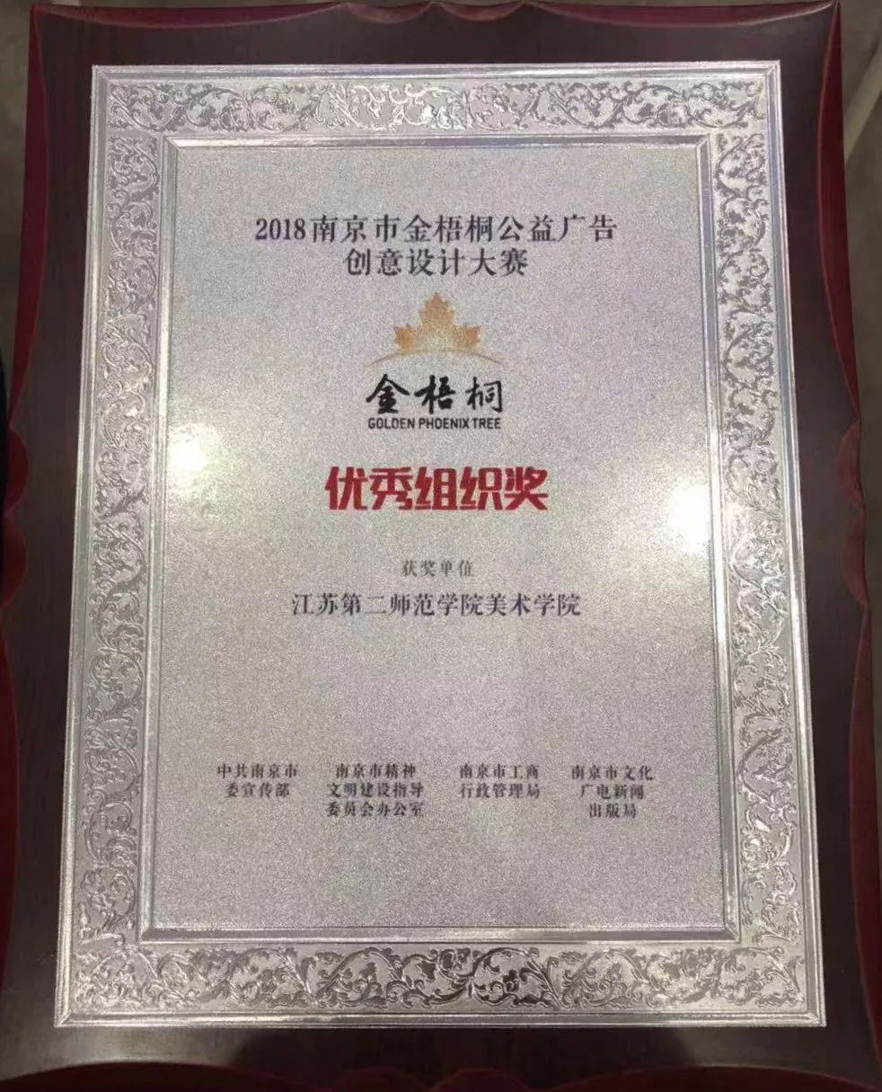 最后,让我们再一次祝贺江苏第二师范学院荣获南京市金梧桐·公益广告创意设计大赛优秀组织奖。