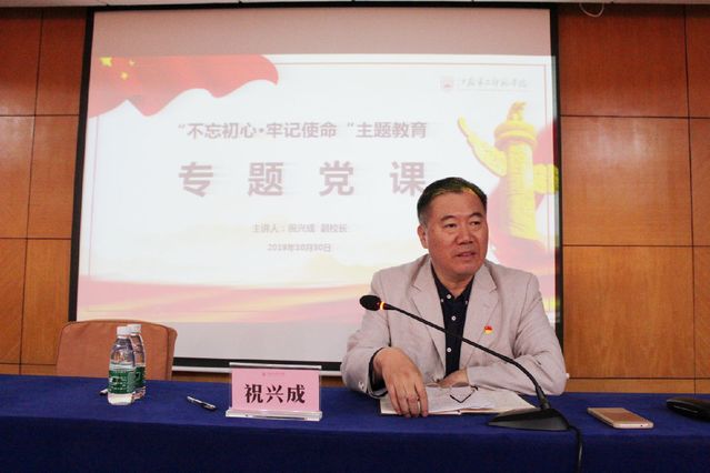 按照“不忘初心、牢记使命”主题教育学习与“青马工程”基础理论培训的工作安排,2019年10月30日,副校长祝兴成为分管单位美术学院、后勤处和资产经营总公司上主题为“严格尽职履责,勇于担当作为”的党课。三个单位的全体党员和美术学院的入党积极分子、2019级全体新生班委参加。