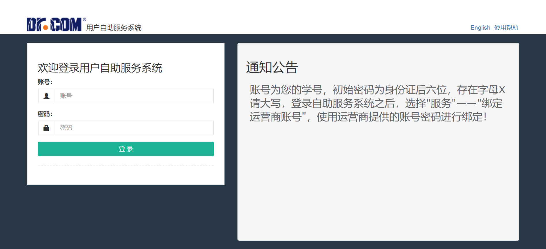 (2)确实没有在“自助服务平台”中绑定运营商的宽带账号及密码。请登录“自助服务平台”进行正确的绑定。