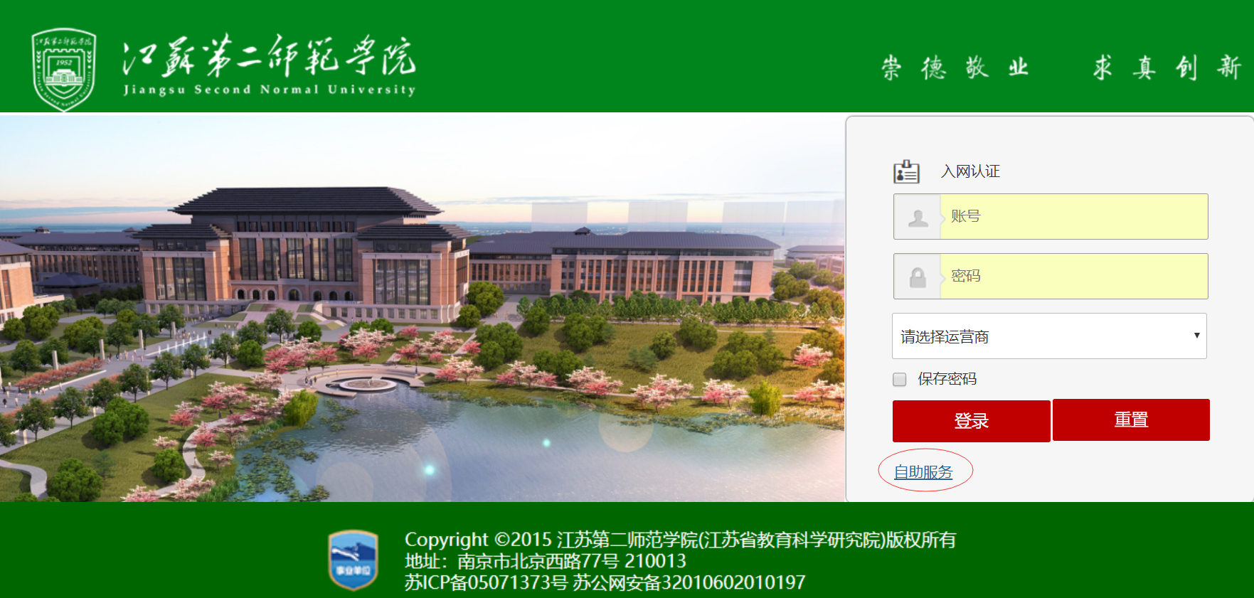 1、学生请连接“JSSNU”这个无线SSID,无线连接成功后,可以通过如下两种方式进入“自助服务平台”: