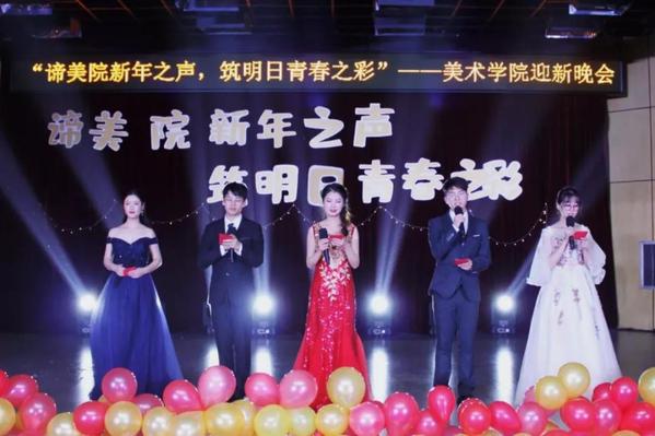 本次晚会由2017级美术学定向专业薛雯、2019级环境设计专业熊宇煊、2018美术学定向专业管炜丽、2018级美术学定向专业徐盛、19美术学转本专业沈慧敏五位同学主持。