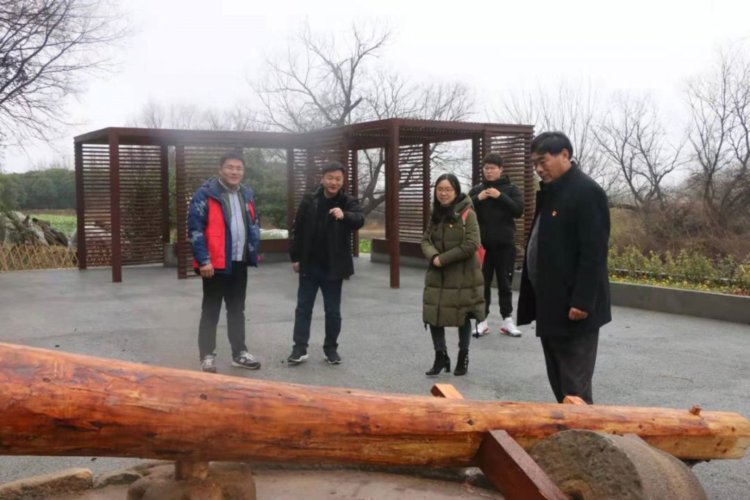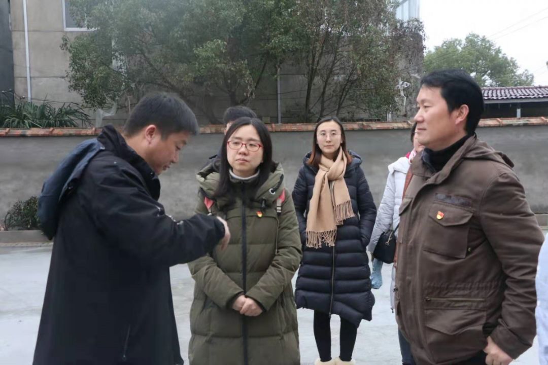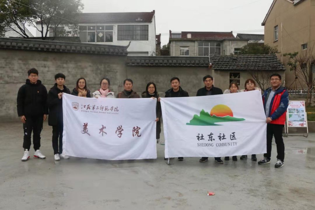 在写春赠福的同时,石湫街道社东社区党总支书记陈兴宝邀请美术学院党总支书记丁莹、副书记孙仕荣等一行6名师生,同赴2019年暑期社会实践美术学院“美蕴思政育人,勇承时代担当——艺术青年助力美丽乡村建设”团队设计的社东社区人居环境整治项目点:魏家村内和杨家村口两处卫生死角改造点参观,两处项目点时至2020年1月已基本建成,村内环境得到了极大的提升,陈兴宝书记代表社东社区全体村民对美术学院表示感谢。