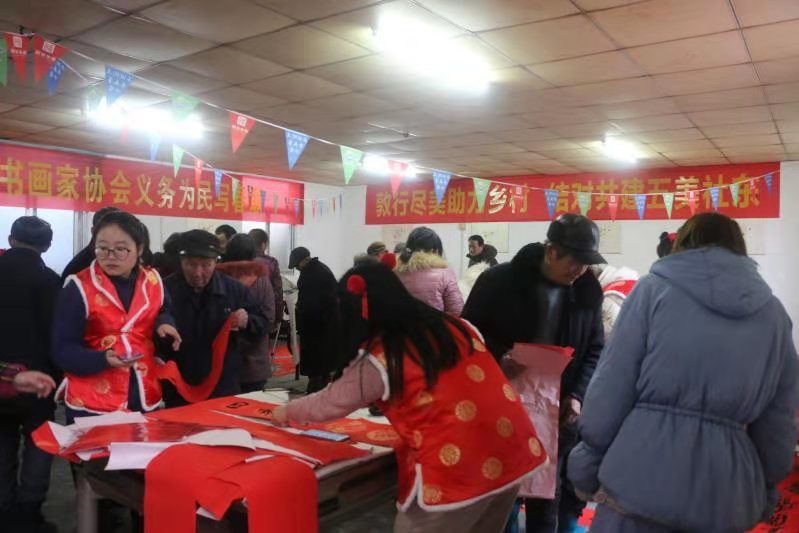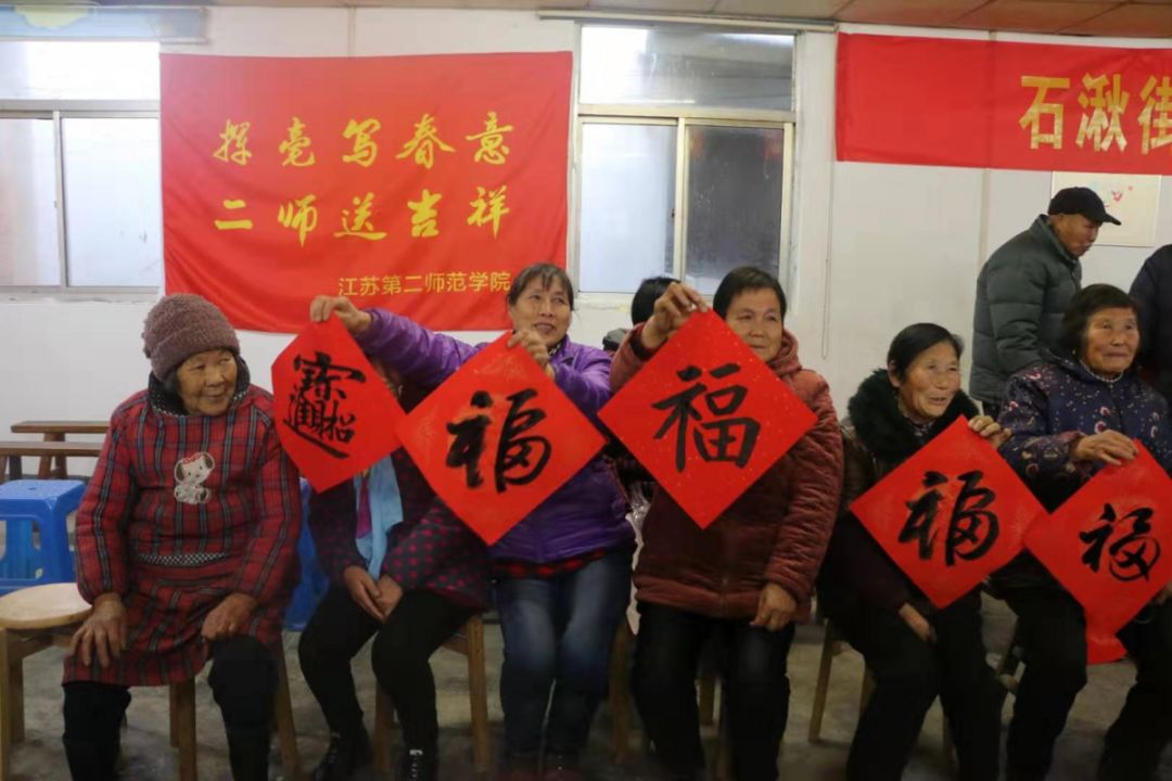 2020年1月3日下午13:30,江苏第二师范学院美术学院党总支、二级关工委协同校离退休工作处共赴美术学院党建共建单位石湫街道社东社区联合开展“敦行尽美助力乡村,结对共建五美社东”主题活动,活动以“写春联,送祝福”为主要形式,发挥美术学院专业特色,展示二师老少师生风采,一同为社东社区的村民带去中国传统文化书法的魅力,提前渲染新年的气氛。
