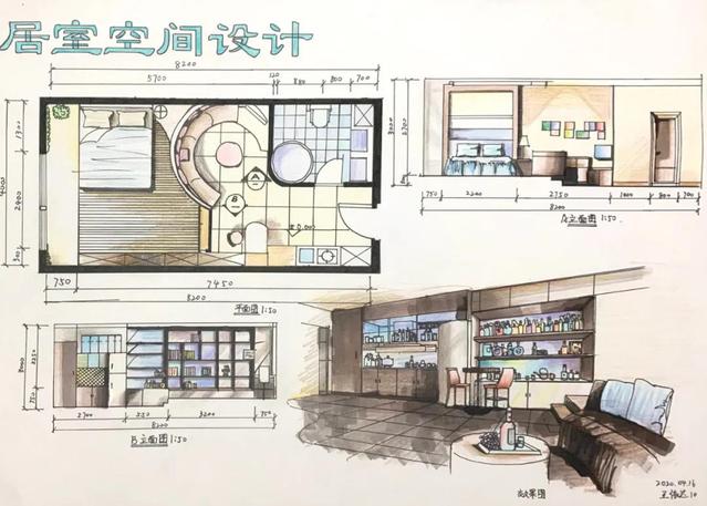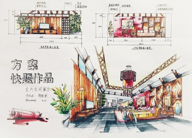 学完这门课程后,知道了材质表现的技法,学会了马克笔的技法使用,知道了什么是一点透视与两点透视。我对设计这个词有了新的理解。我认为设计是以主观思想为主,结合客观实践,通过视觉形式表达表达出来。设计不是简单的行为,是需要认真思考的行为。需要累积丰富的知识,我们是学设计的,不仅需要从书本中社区知识,更要通过网络,书刊.等等途经去获取知识,积累设计材料。还要在实践中以帮助我们进一步积累专业知识,实践出真知。只有这样才能更好得学习设计,将来才有可能成为好的室内设计师。有付出就一定会有收获。今后,一定会在创意想法和扎实的基本功中前行。