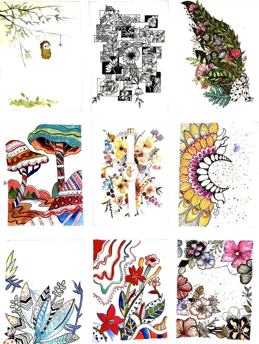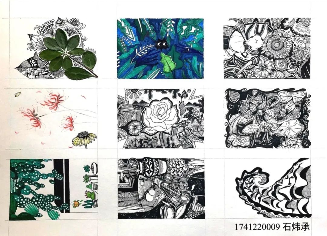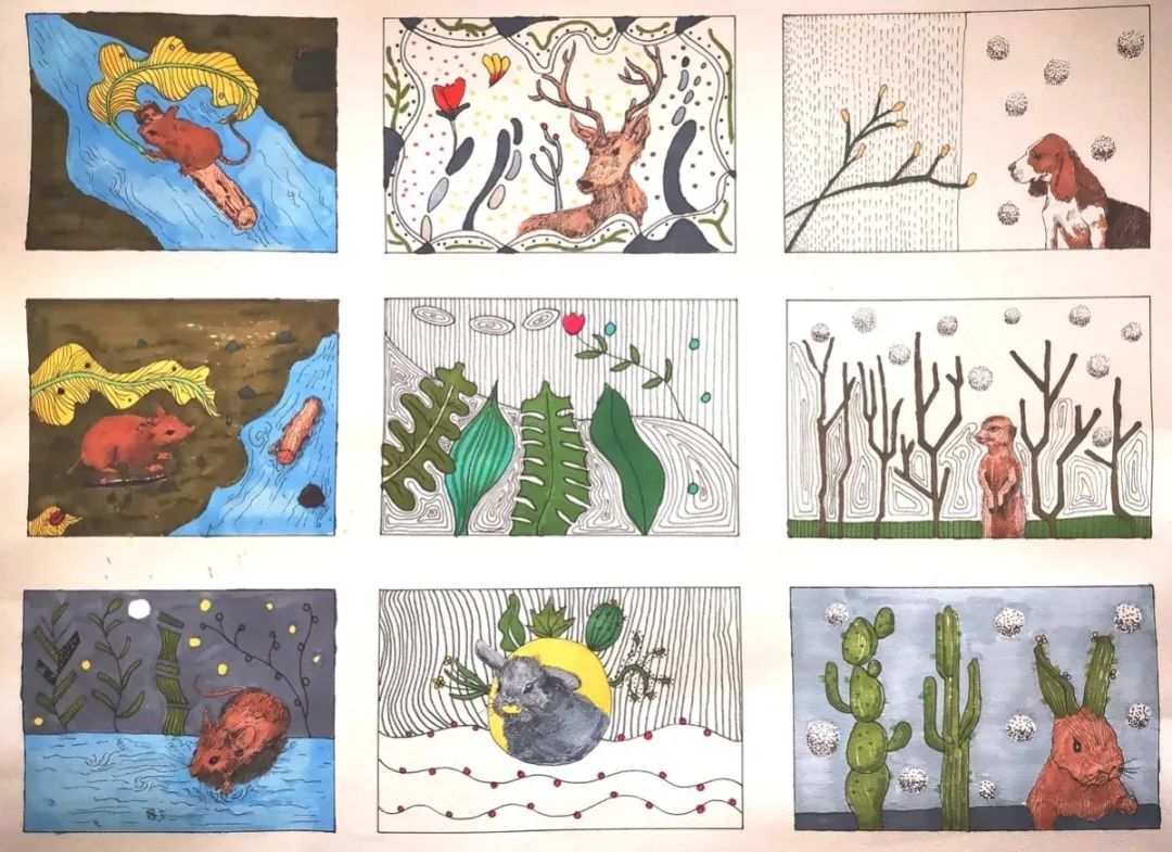 短暂的两周美术教育技能课程已经告一段落,诗卉老师带领我们欣赏了各种类型的画作,让我进一步的领略了中西方插画的魅力。由于疫情的关系,我有充足的时间在家准备课程作业,课程内容一步步深入,先是进行线条练习,再以花卉元素进行组合设计,最后完成绘本插画的创作。我慢慢喜欢上了插画,感受到了其中的快乐,并且有向这方面发展的想法,在此之前我会扎实练好基本功。