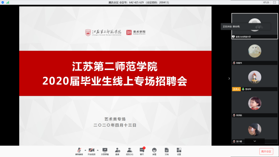 招聘会上,美术学院全体毕业生按时“入场”在线聆听宣讲会,用人单位共提供各类岗位近百个,覆盖美术学、视觉传达设计与环境设计三个专业,经过在线视频宣讲、精准互动,起到了良好的宣传与双选的效果。