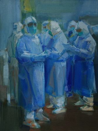 新冠疫情不仅是对全国上下应对能力的考验,也是对广大文艺工作者创作能力和精神品格的考验,“文章合为时而著,歌诗合为事而作”,在省委宣传部指导下,江苏省组织开展了打赢疫情防控阻击战艺术作品主题创作活动,已在近期分别推出两个专题性大展:4月23日在江苏省现代美术馆开展的《江苏省美术、书法“同心战疫”主题作品展》(中共江苏省委宣传部、江苏省文联主办,省美协、省书协、省现代美术馆承办);4月30日在江苏省美术馆开展的《江苏省抗疫主题美术书法精品展》(中共江苏省委宣传部、江苏省文化和旅游厅主办,江苏省国画院、江苏省美术馆、江苏省书法院承办)。江苏第二师范学院美术学院两位教师孙仕荣、孙妮娜积极响应省委宣传部、省文化和旅游厅、省美协号召,踊跃投稿,最终有四幅作品入选这两次展览并无偿捐赠给江苏省美协及江苏省美术馆。两位老师用美术作品热情讴歌抗疫前线的战斗英雄,如实记录感人事迹,生动描绘“坚定信心、同舟共济、科学防治、精准施策”的抗疫图谱。通过此次主题创作、展览、收藏,展示了江苏第二师范学院美术学院教师团队潜心创作、服务教学、宣传二师的良好形象,共同谱写了我校“崇敬英雄、崇尚奉献,敬畏生命、珍惜健康”的时代篇章。