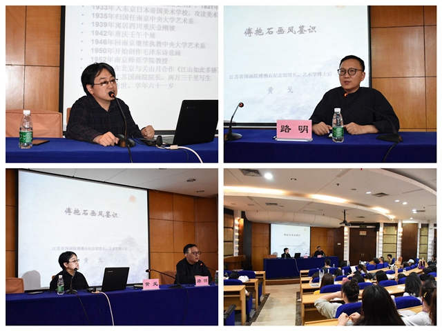5月22日下午,美术学院在草场门校区现代教育技术楼一楼报告厅举办石城讲坛系列讲座之《傅抱石画风鉴识》,江苏省国画院傅抱石纪念馆馆长黄戈先生主讲。讲座由美术学院副院长路明主持,美术学院2018级美术学专业全体同学参加本次讲座。
