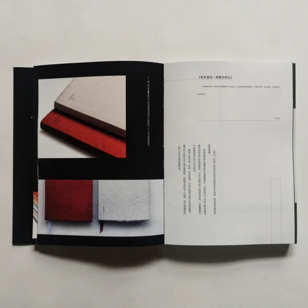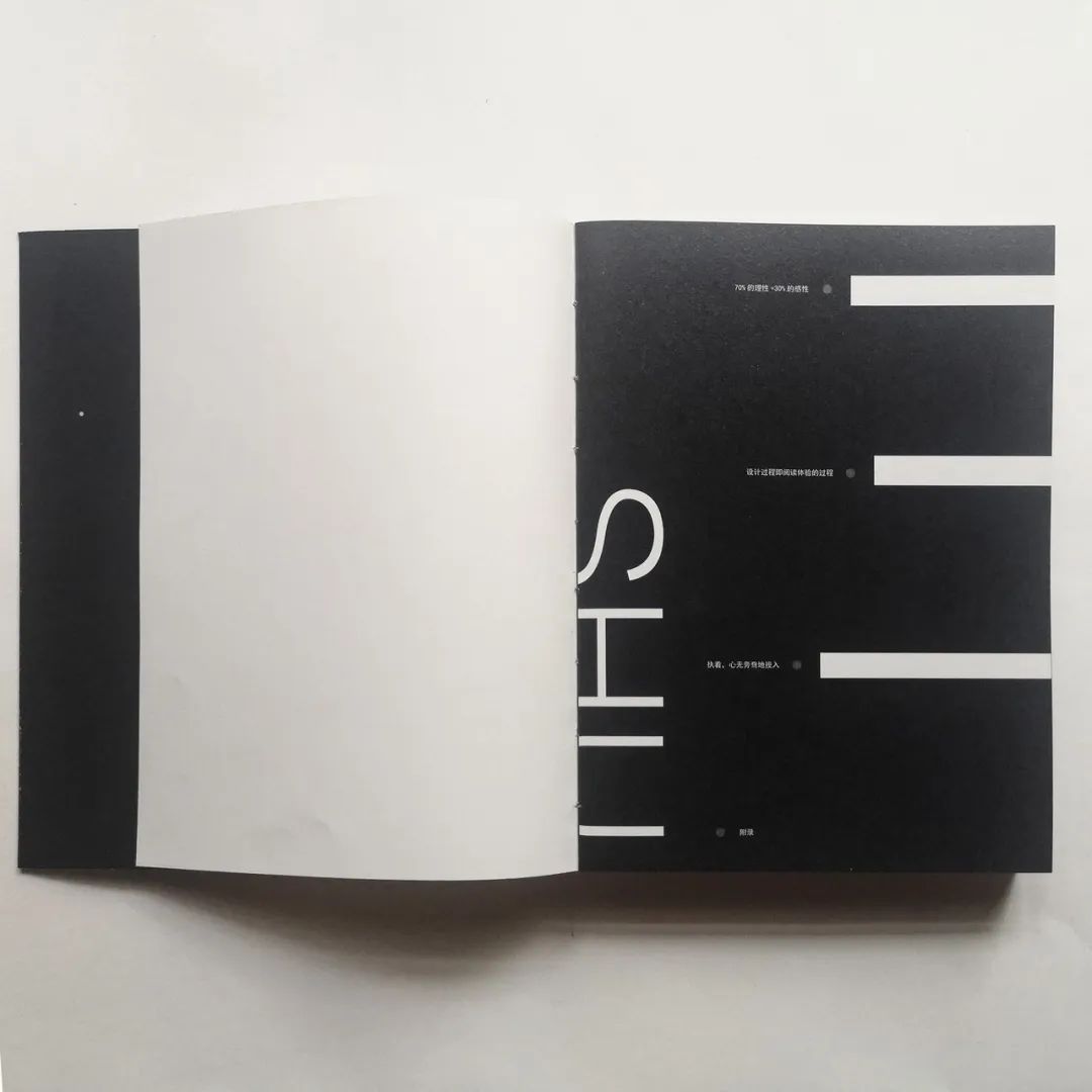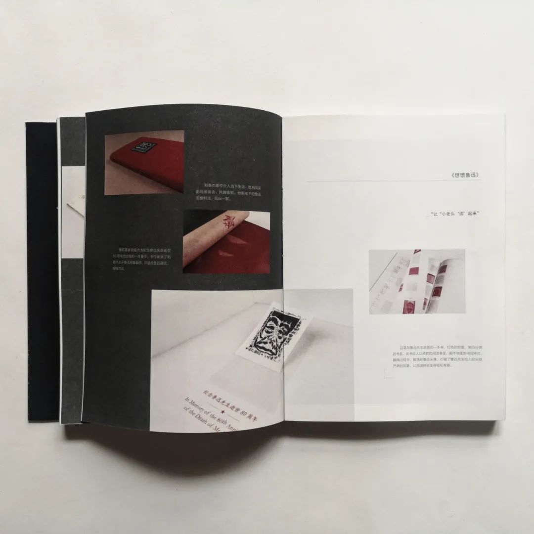 在创作作品中,以特殊纸张结合现代设计感为手段,大胆地创新与排版,运用黑白灰的关系,在空间、留白、材料上与现代设计进行融合。