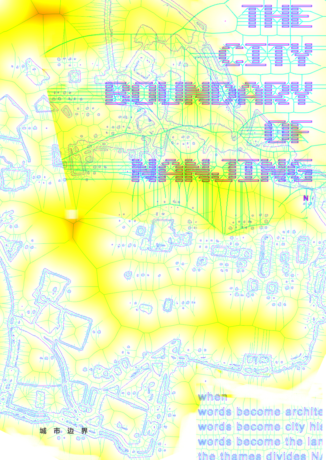 本人的毕业设计与毕业论文研究课题相关联,通过毕业论文研究打下的理论与结论基础,在此之上通过视觉设计语言进行提炼升华,用设计语言以及图像语言表达出城市意象以及城市边界之间的关联性。《城市·边界》是本毕业设计的主题,以画册的形式展现,其主体内容为以城市边界为主体创作的视觉海报为主。