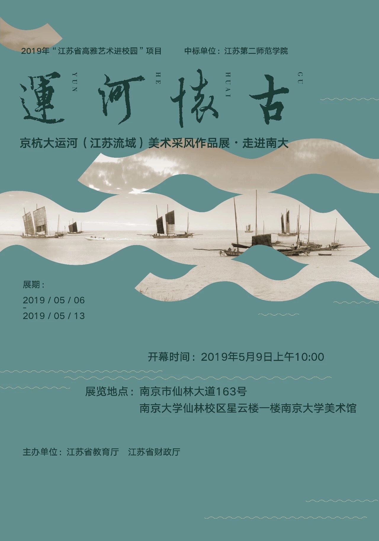 为了响应党的十八大推进社会主义文化强国建设精神,贯彻习近平总书记在文艺工作座谈会上的重要讲话精神,“高扬社会主义核心价值观旗帜,努力创作生产出更多无愧于我们这个伟大民族、伟大时代的优秀作品”,江苏第二师范学院“运河怀古——京杭大运河(江苏流域)美术采风作品展”于2019年中标“江苏省高雅艺术进校园”项目。
