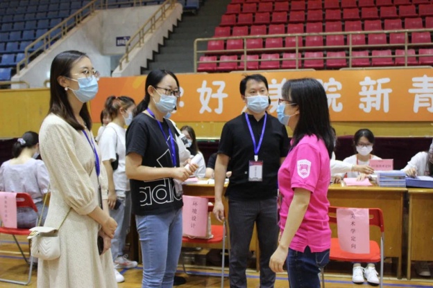 伴着初秋送来的丝丝清爽,载着父母加注的殷殷期望,又一批新面孔来到了江苏第二师范学院美术学院。2020年9月13日上午,美术学院迎新工作在江苏第二师范学院草场门校区顺利开展。美术学院党总支书记丁莹、副院长路明、副院长陶金鸿、党总支副书记孙仕荣带领新生班主任、辅导员以及迎新志愿者们一同开展迎新工作。