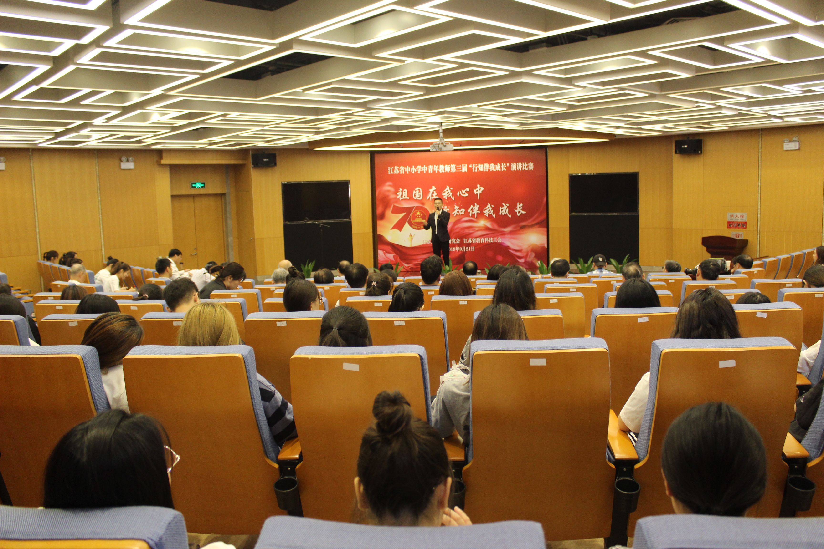 师者,学高为师,身正为范。为了进一步加强美术学院美术师范生师德师风建设,提高未来美育工作者思想政治素质和职业道德水平,弘扬教育正能量。2019年9月21日,由江苏省陶行知研究院、江苏省教育科技工会联合举办的江苏省中小学中青年教师第三届“祖国在我心中,行知伴我成长”演讲比赛在草场门校区现代教育技术楼二楼报告厅举行。美术学院组织2017级与2018级全体美术师范生到场观摩比赛。