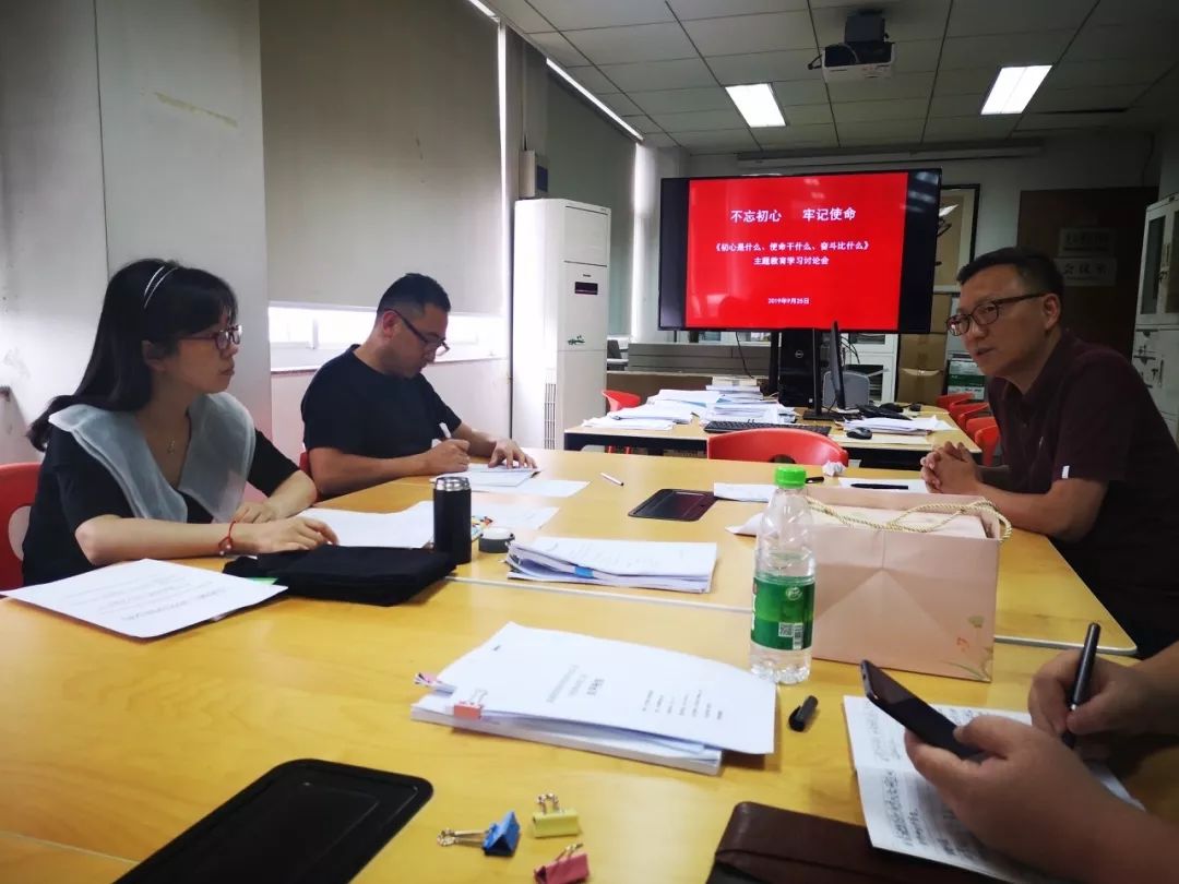 讨论中,由支部书记带头发言,党员依次发言,积极探讨“初心是什么、使命干什么、奋斗比什么”。党员们的讨论热烈而深入,有的通过解读老一辈共产党人的初心,回顾了自身入党的初心,表达了要立足工作岗位和学习实际坚守和传承初心,一路向前的决心;有的结合学习心得,表达了在新时期砥砺奋斗,脚踏实地,履行新时代教师和大学生党员的历史使命;有的对照党章党规、初心使命、先进典型,实事求是地检视自身差距,深刻检视剖析。