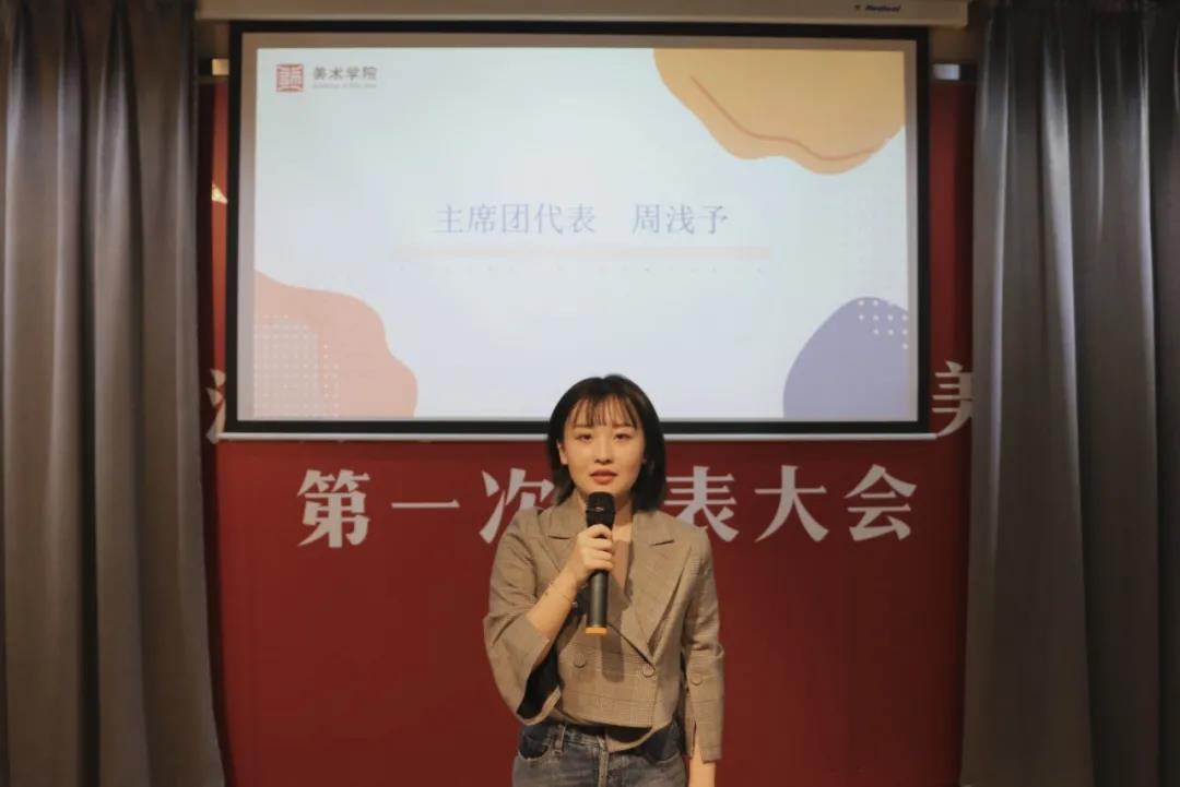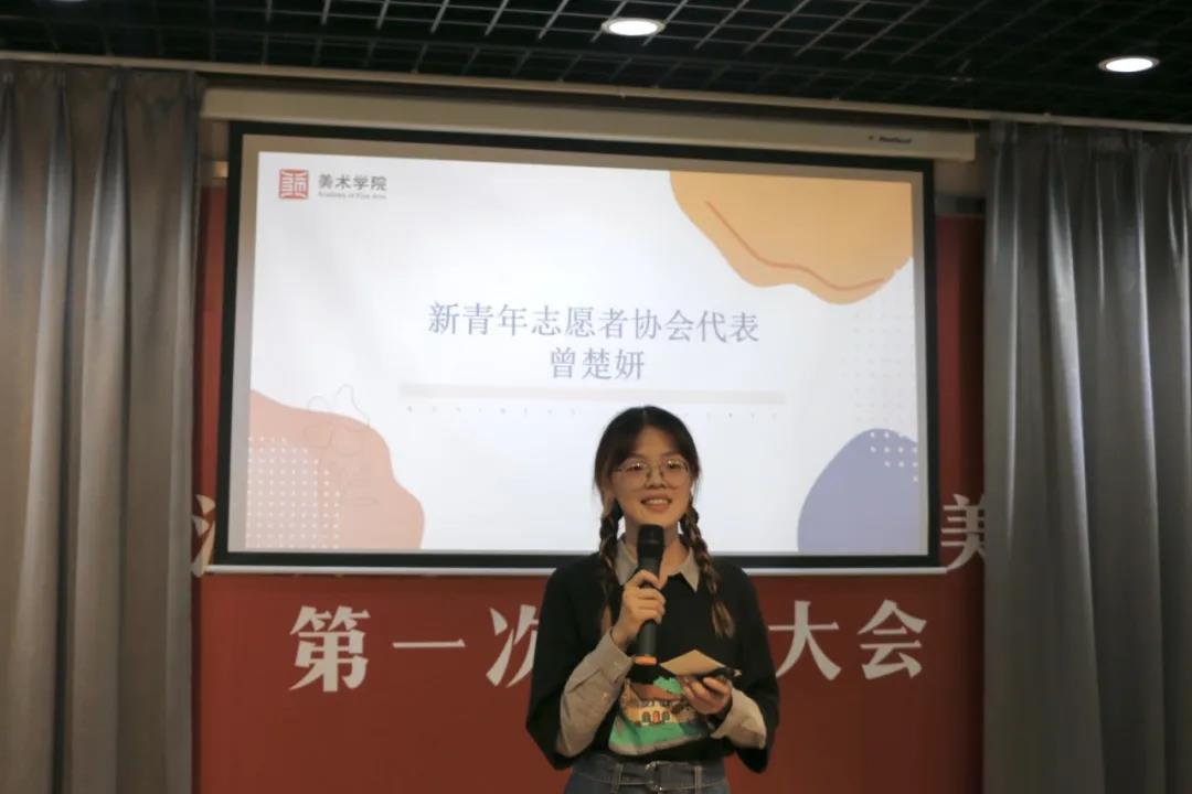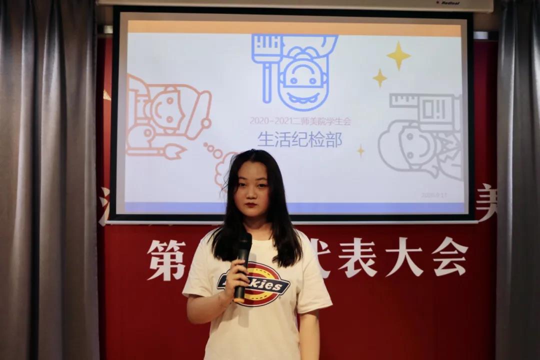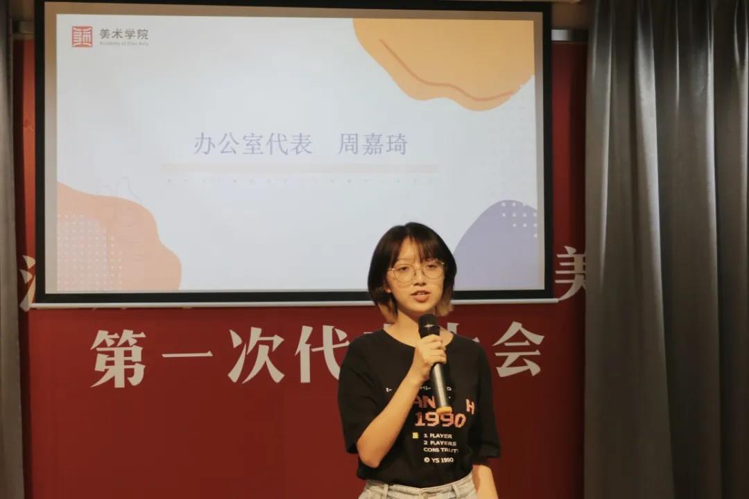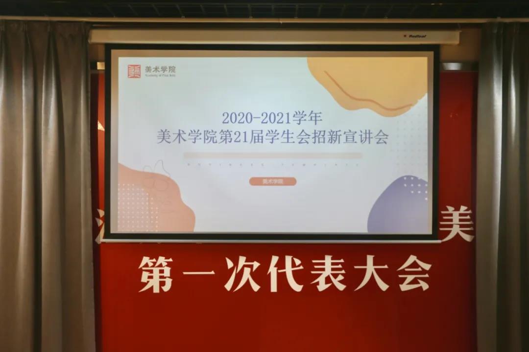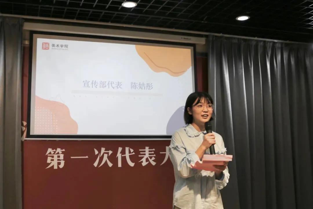 接着,学生会主席周浅予为新同学们做了美术学院学生会的介绍以及动员发言。接下来,各个部门的部长对于各自部门职能做出讲解,并且提出了招新要求。