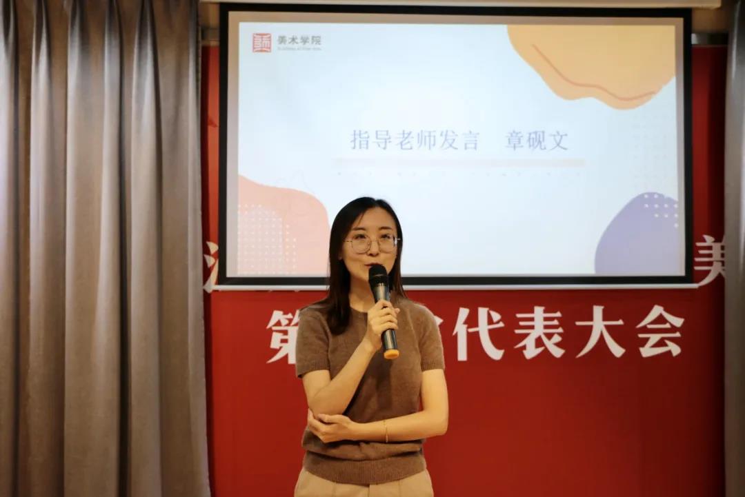 最后,美术学院分团委书记章砚文老师和大家分享她的心里话。章老师表示同学们不仅能够在学生会这样一个以兴趣为交汇点的地方,享受和培养自己的爱好,还能在校内外的活动及赛事中一展风采,得到更多的锻炼机会。