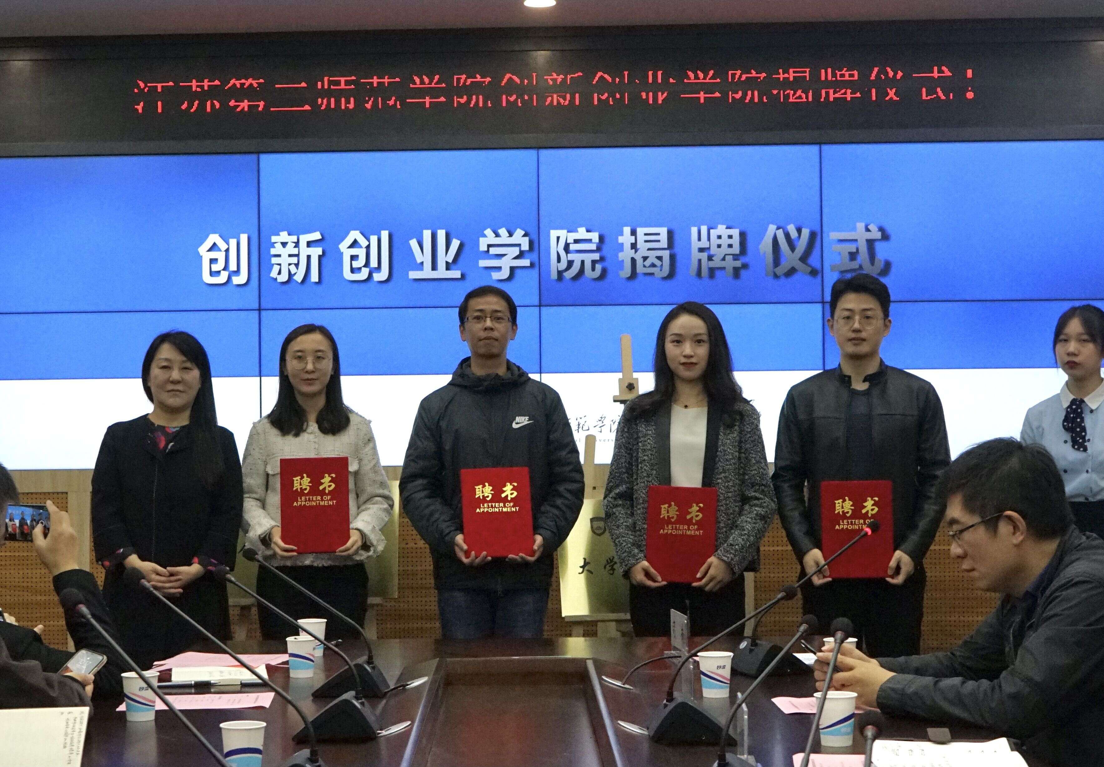10月29日上午,我校在石湫校区崇文楼2-410举行创新创业揭牌仪式。校党委副书记、副校长刘继红,副校长、创新创业学院院长徐国华出席仪式。我院创业导师沈刚、章砚文、谢渊、卢雨梦参加会议。招就处处长、创新创业学院副院长司南主持揭牌仪式。