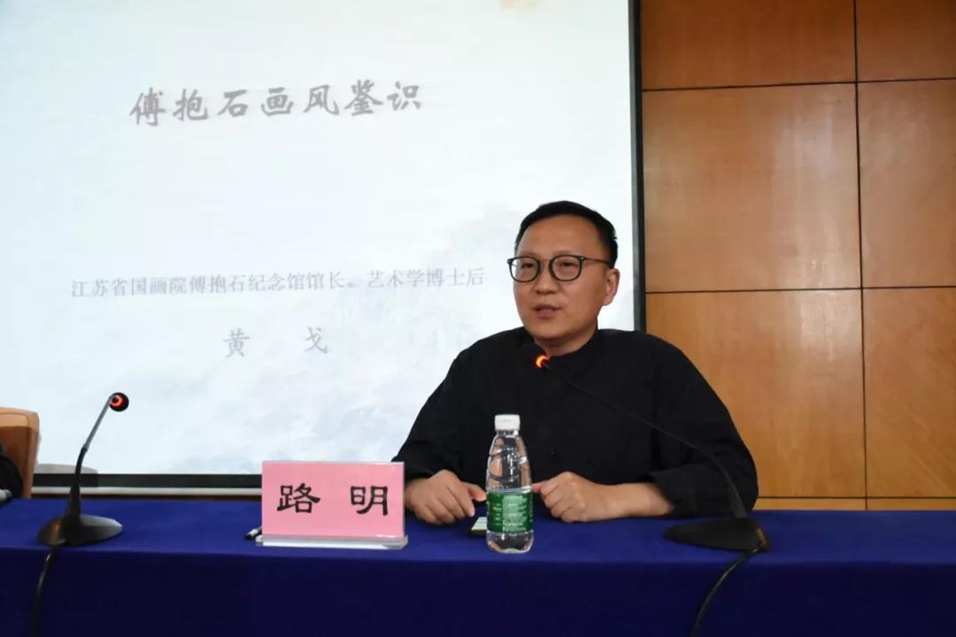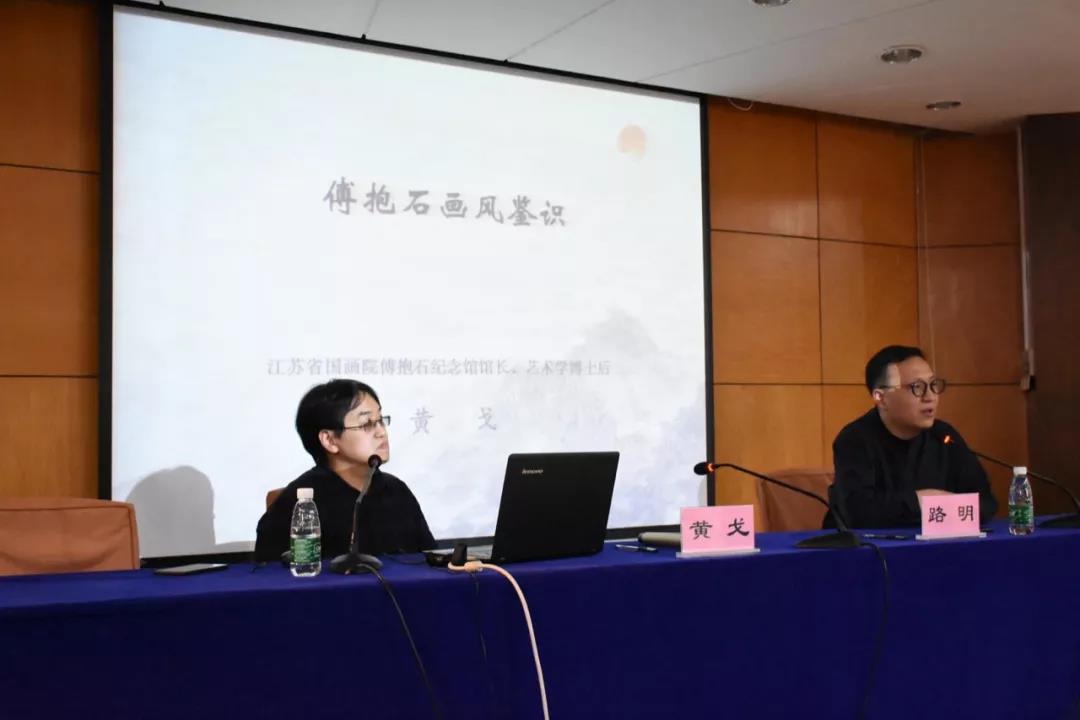 讲座伊始,黄戈先生从我国近现代著名画家傅抱石先生的人生履历谈起,讲述了有关傅抱石的画风演变、作画特点、绘画思想等内容。
