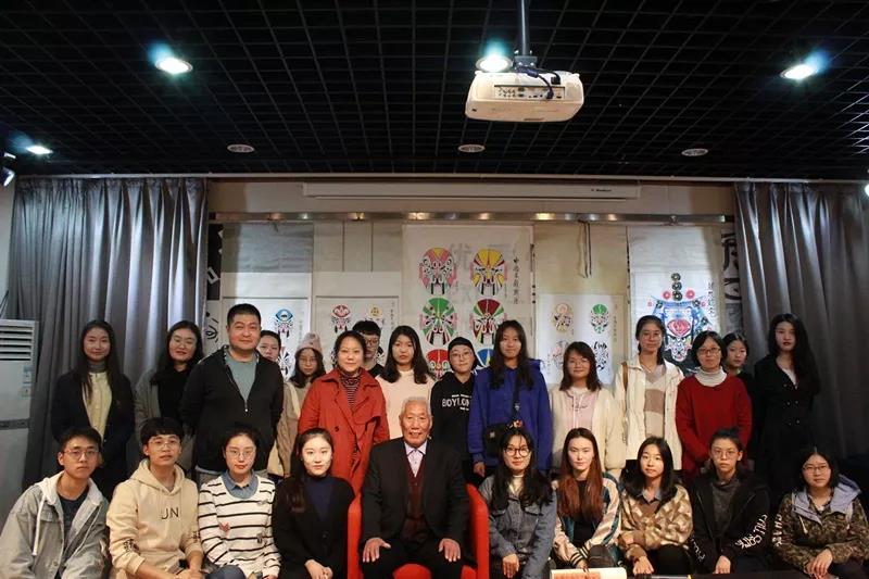 随后,老先生以自己的作品为例,向大家介绍了南北派京剧脸谱的差异和脸谱中颜色及图案的寓意,丰富了同学们对脸谱的认知,扩宽了同学们的视野。接着,同学们积极思考,踊跃提问,颜少奎老先生也耐心细致地回答了戏剧中存在相似脸谱的原因和戏曲脸谱中三块瓦、十字门脸、碎脸等与角色的关系。