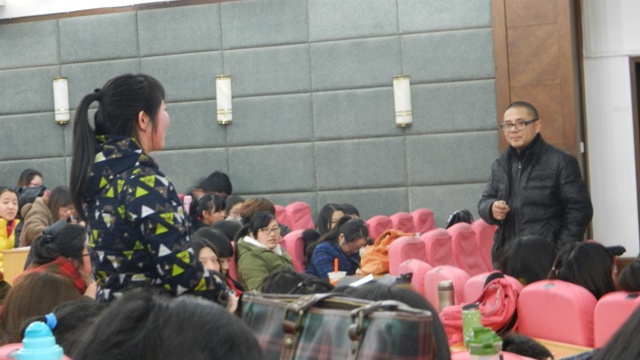 王老师以“未来社会急需怎样的一名教师?我们面对新的教育情境挑战需要什么?”为切入点与同学们分享了许多一线老师的心声,进入二十一世纪的今天,我们周围的条件与环境、生存的方式与需求、责任与价值观等都发生了明显的变化,而作为教师将用怎样的方式来解决来自我们现实、教育与美术教学中的困惑就成了首要任务,这也正是同学们未来走上讲台会面临的很实际的问题。同学们都听得很认真,认识到了一些以前从未注意的问题。