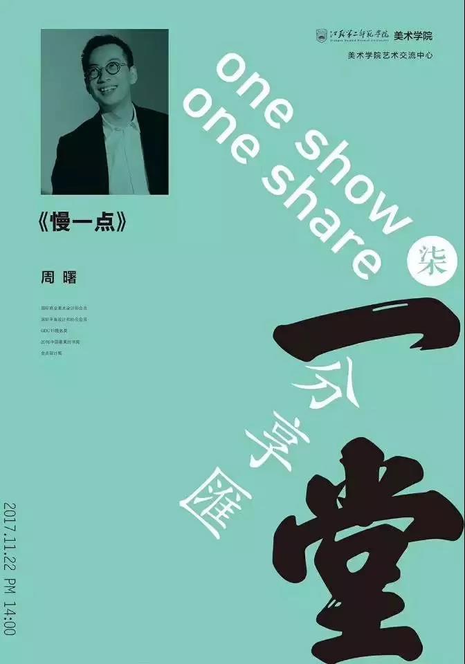 2017年12月6日下午两点设计师兼摄影师周曙老师在江苏第二师范学院艺体楼五楼举行了《慢一点》分享会。