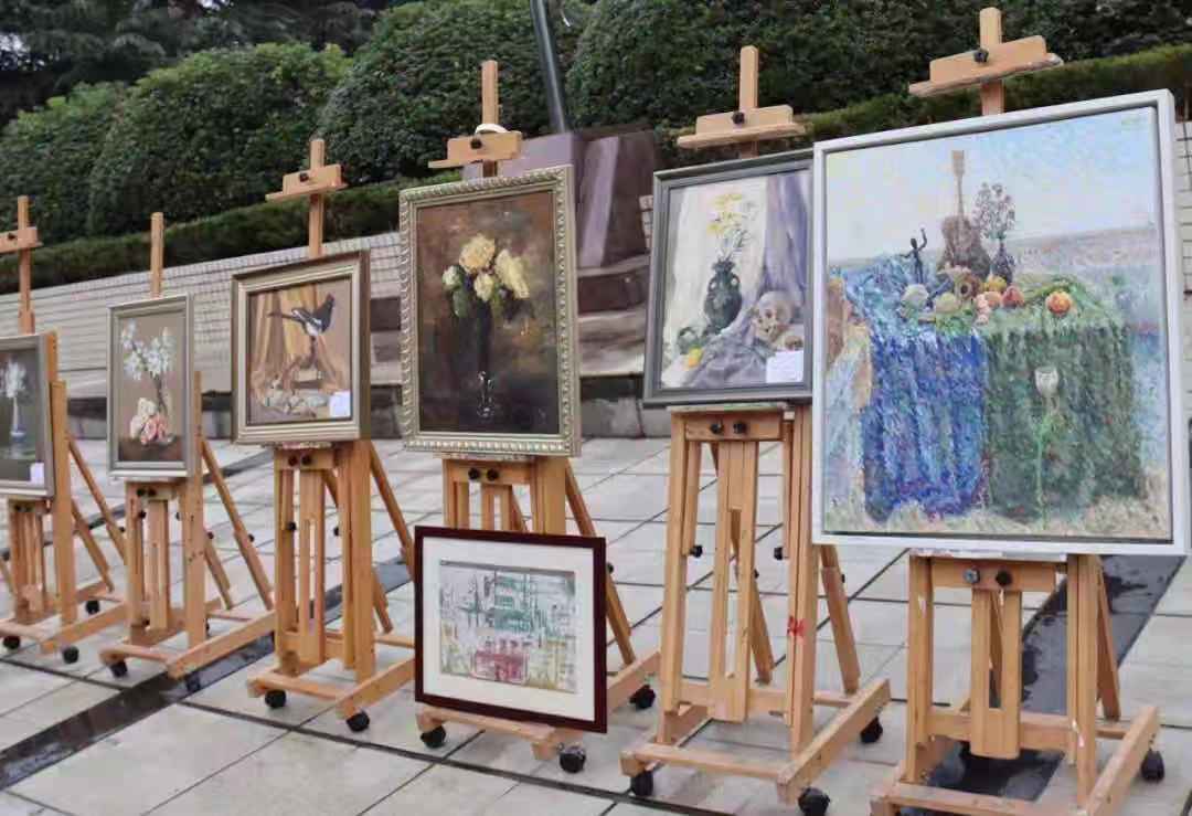 为彰显学院美育风采,营造校园艺术文化氛围,展现学院专业特色近期的累累硕果,提高拓宽师范学子的审美眼界,新一期的露天画廊活动应运而生,为整个美艺周添光溢彩。自活动开展以来,美院以“视觉对话”系列的专业课程作品展为抓手,以“露天画廊”公益售卖为主线,以“北京西路77号”微信公益售卖平台为依托,旨在于公共露天广场提供自我发挥的广阔天地,让我院许多青年学生的优秀作品得以展示,提高专业认同,建立专业自信,赢得了广大师生的一致认可与支持。