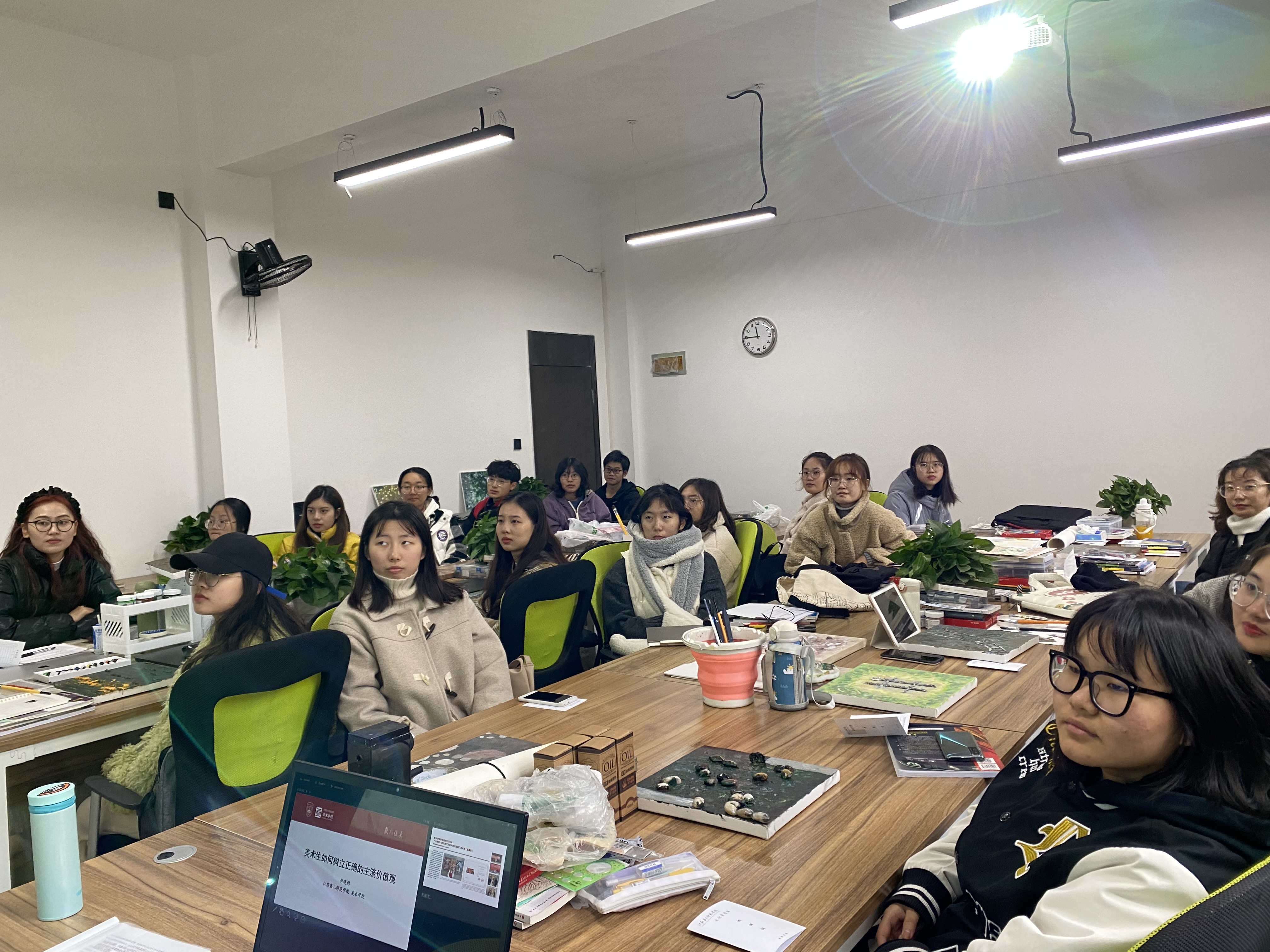 最后,付老师指出,美术生确立正确的主流价值观,要了解艺术语言,要关心身边事物,要了解历史事实。