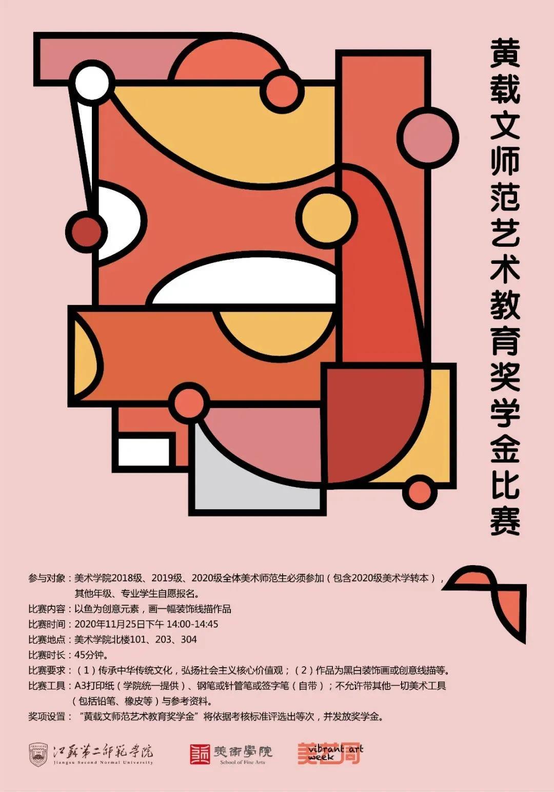 2020年11月25日下午14时,江苏第二师范学院美术学院2020“美艺周”系列活动之“黄载文师范艺术教育奖学金百人线描大赛”在草场门校区举行,本次大赛奖学金由美术学院退休教师黄载文教授捐资设立,主要用于奖励江苏第二师范学院美术学院德、智、体、美、劳全面发展、品学兼优的学生。大赛设立多个比赛现场,参与对象包括美术学院2018级、2019级全体美术师范生(包含2020级美术学转本)和其他年级、专业自愿报名的学生。
