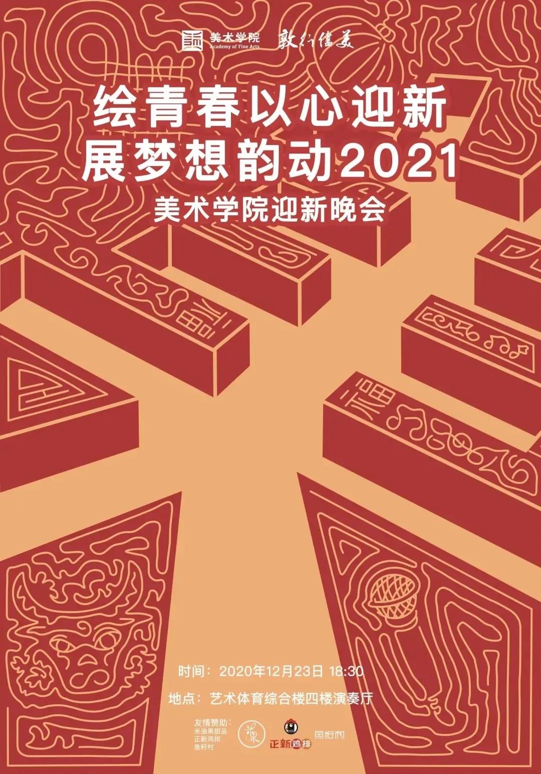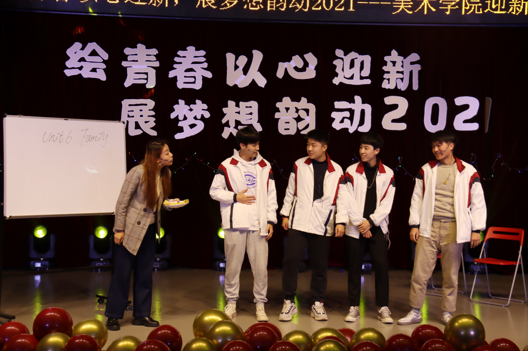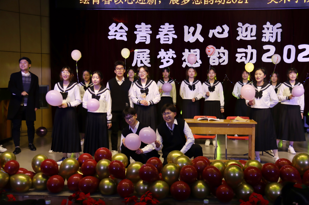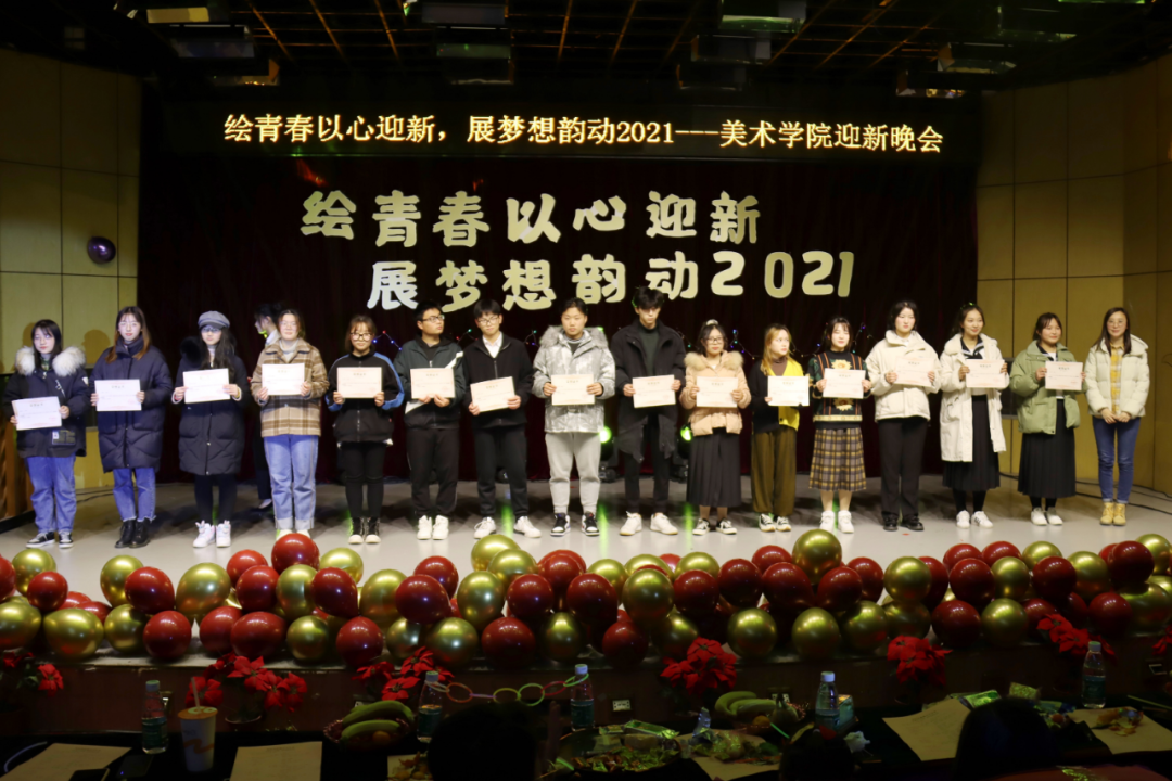 为迎接2021新年的到来,展现才华横溢热血澎湃的美院新血液,2020年12月23日晚,美术学院“绘青春以心迎新,展梦想韵动2021”迎新晚会于18:30在江苏第二师范学院艺体楼四楼演奏厅华丽揭幕。