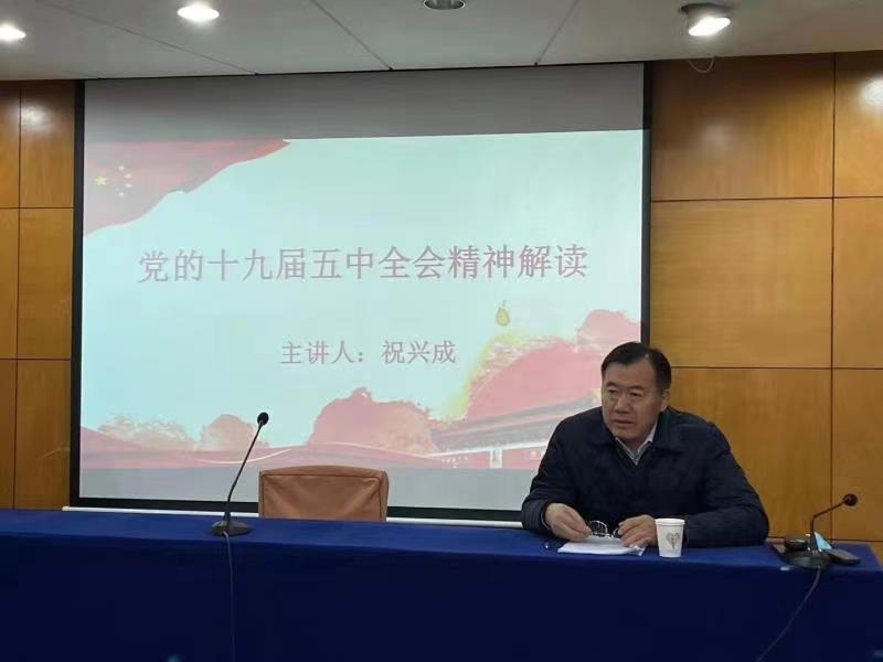 祝兴成指出,学习、宣传、贯彻党的十九届五中全会精神,是当前和今后一个时期全党全国一项重要政治任务。他围绕全会通过的《中共中央关于制定国民经济和社会发展第十四个五年规划和二〇三五年远景目标的建议》的核心要义——科学把握新发展阶段、深入贯彻新发展理念、加快构建新发展格局,以及加强党的全面领导四个方面详细解读了十九届五中全会精神。