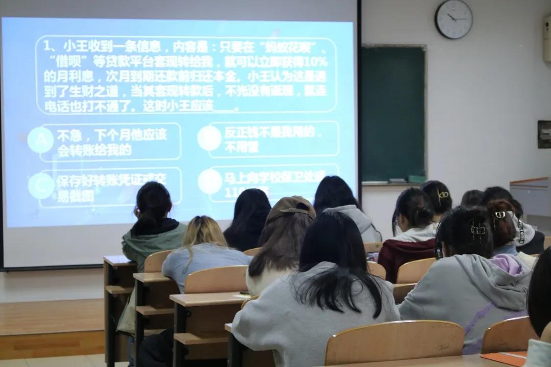 比赛中包含从如何正确使用口罩、怎样选购冷链食品、战时状态的管控措施,到师生如何共担当、织牢校园防疫网。一系列疫情防护相关知识,贯穿选择、判断、视频、演讲等各个类型赛题。在观赛过程中,教室里气氛严肃紧张,同学们都沉浸在精彩的比赛之中,积极跟随着思考与答题。