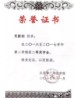 肖新剑,中国共产党预备党员,江苏第二师范学院美术学院16级美术学师范(定向)班学生,现担任美术学院学生会主席、美院学工办助理,一直以 “服务学生,服务学校,服务社会”为工作宗旨。曾获一次国家励志奖学金,两次校级二等奖学金,一次三等奖学金等。