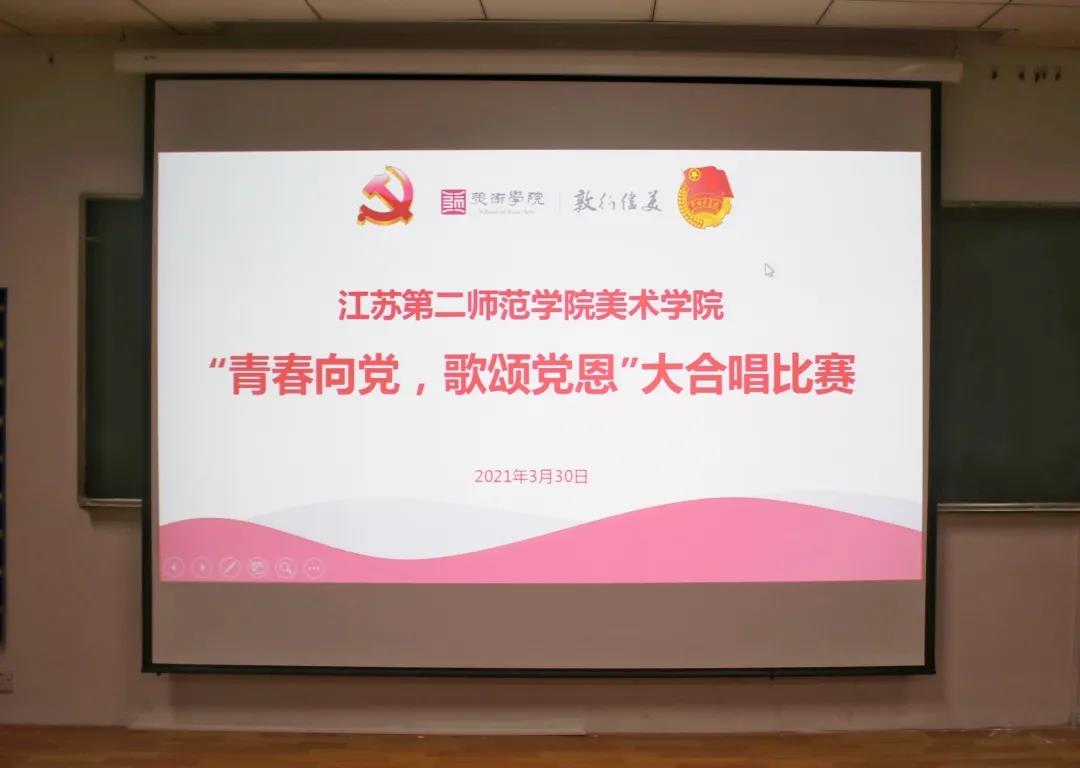 为庆祝中国共产党成立100周年,经过师生的精心准备,美术学院分团委于2021年3月30日晚6点30分在教二楼203隆重举行“青春向党,歌颂党恩”校园红歌合唱比赛。特邀嘉宾声乐老师马平、美术学院学工办主任白丽、分团委书记章砚文及学生会主席团出席比赛现场并担任评委,美院近百名青年学生现场观看各班的精彩演唱。比赛由熊宇煊同学主持。