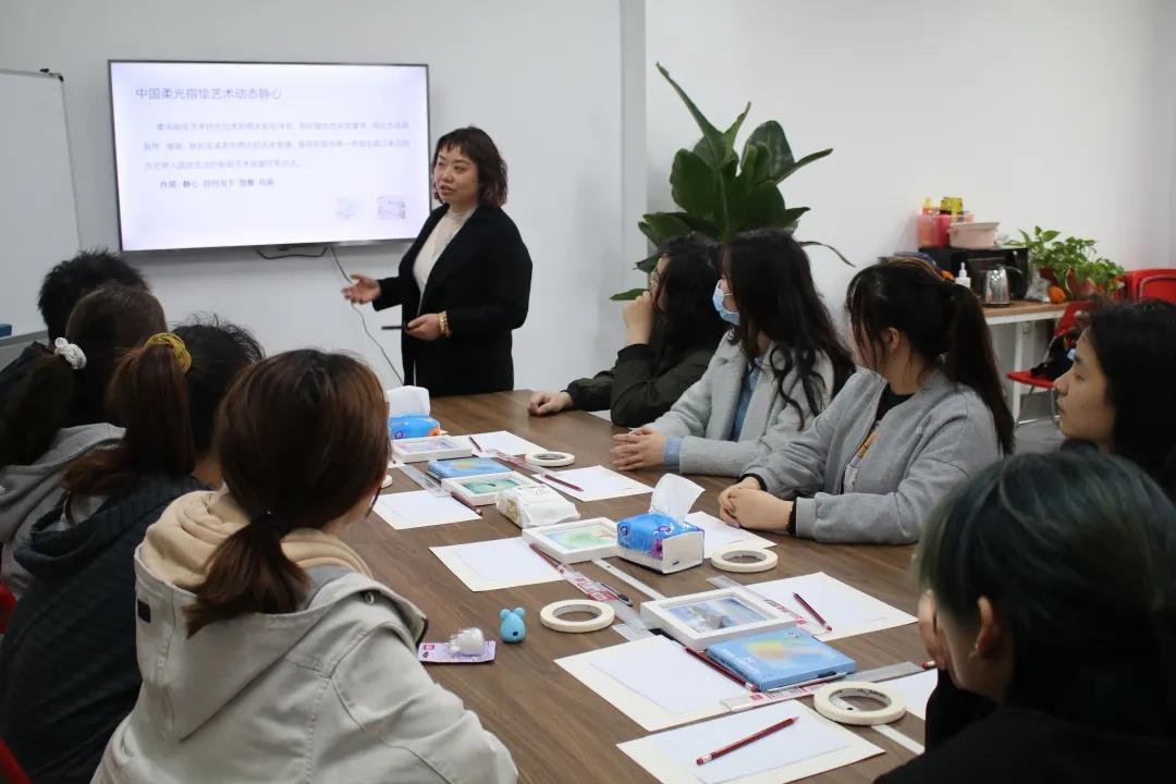 活动伊始,罗丽冬老师让同学们自我介绍、互相交流、活跃气氛,很快,大家彼此熟悉起来。随后,罗老师为大家详细介绍了柔光粉彩艺术,从光影、色彩效果等方面与一般画作进行比较,向同学们提出“我是谁”、“我们是否真正地了解自己”、“我们是否经常否定自己”等一系列问题,从而让大家正视内心的自己。