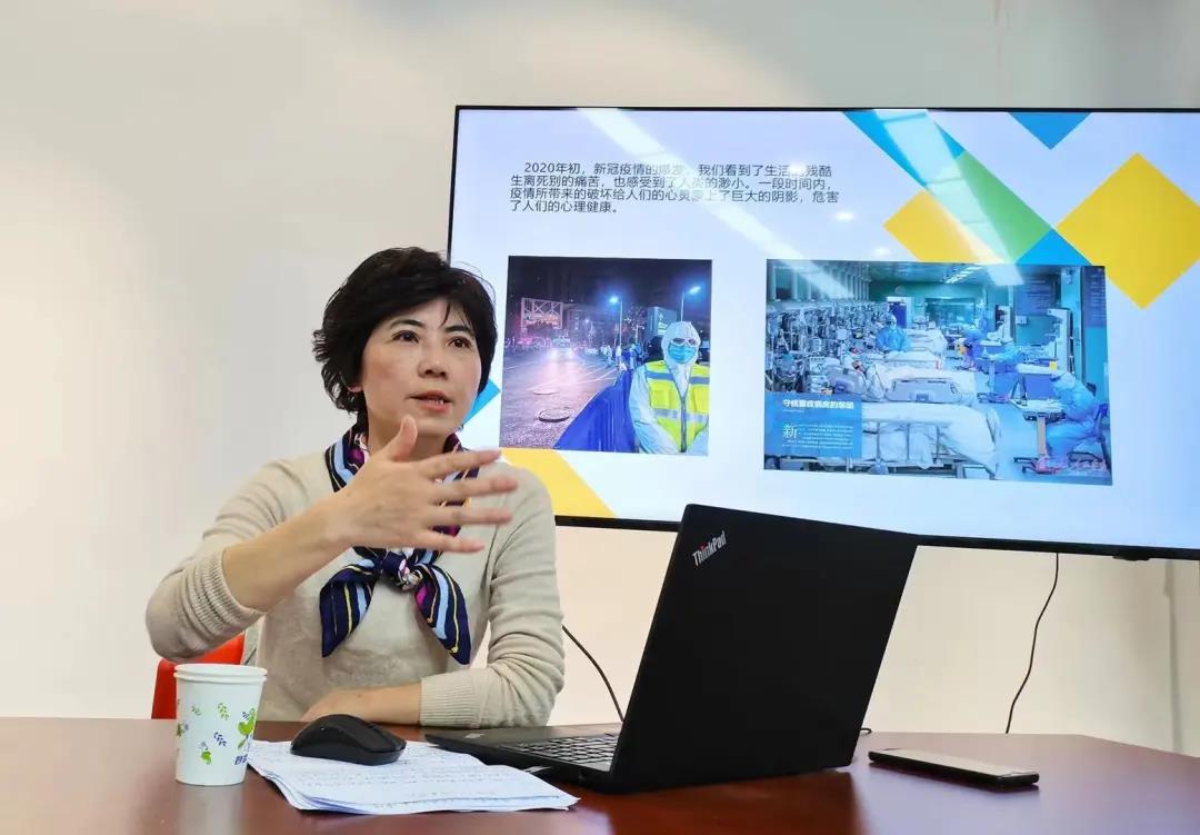 讲座中,黄一莉教授讲述了自己在面对疫情时的心理状态和心理问题,通过反思自己能为疫情做些什么,从而提出艺术的五大功能:疗愈功能、创造性功能、记忆功能、表达功能和激励功能。黄一莉教授通过学生成功的励志案例,展开讲述美术创作、心理分析、美术功能三者之间的关系。并详细讲解了后疫情时期的艺术治疗,即疫情与公共艺术之间的紧密联系。她列举了“花开正当时”、“新冠艺术博物馆”、“阳台艺术”、“温哥华的泡泡球”等公共艺术作品,给人带来希望和温暖,让所有人知道大家都不是孤独的个体。