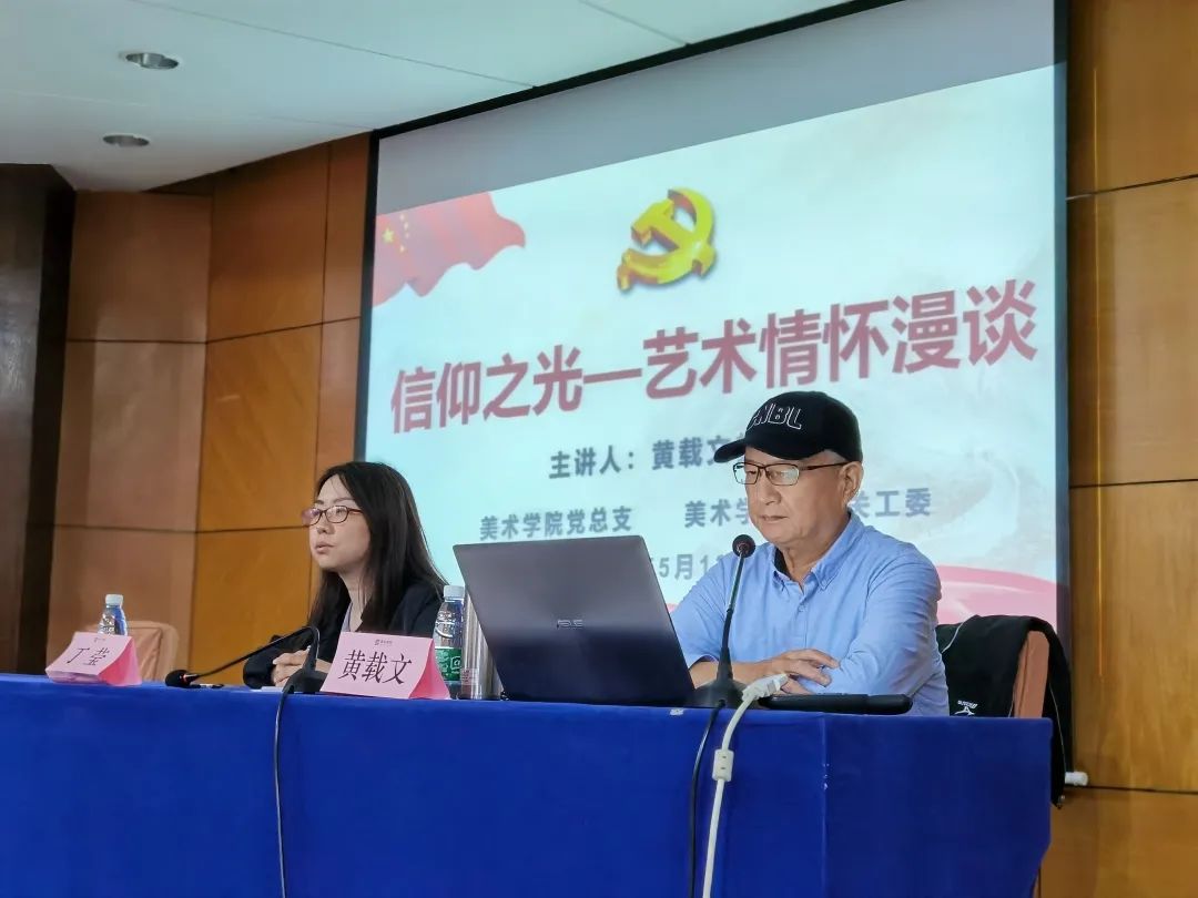 5月12日下午,美术学院党总支、美术学院二级关工委举办《信仰之光—艺术情怀漫谈》讲座,主讲人为美术学院退休教师、美术学院关工委常务副主任、校教学督导黄载文教授。美术学院学生党员、积极分子到场聆听。讲座由美术学院党总支书记丁莹主持。