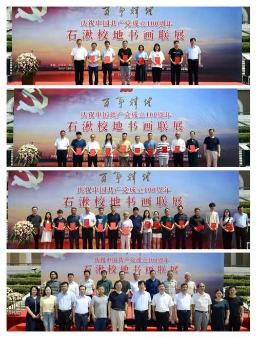 最后,王仁雷宣布“百年辉煌——庆祝中国共产党成立100周年石湫校地书画联展”正式开幕。到场嘉宾上台合影留念。