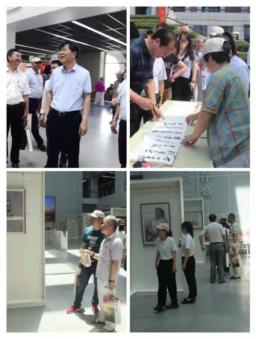 开幕仪式结束后,嘉宾与师生们、书画爱好者们一起观看本次校地书画联展,并进行了艺术作品的交流活动。