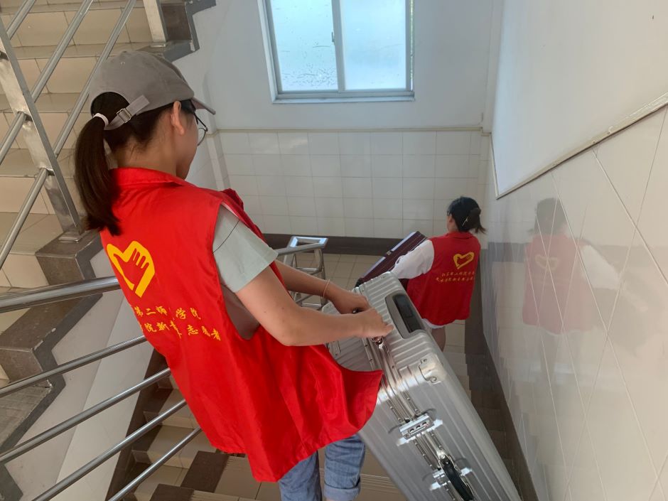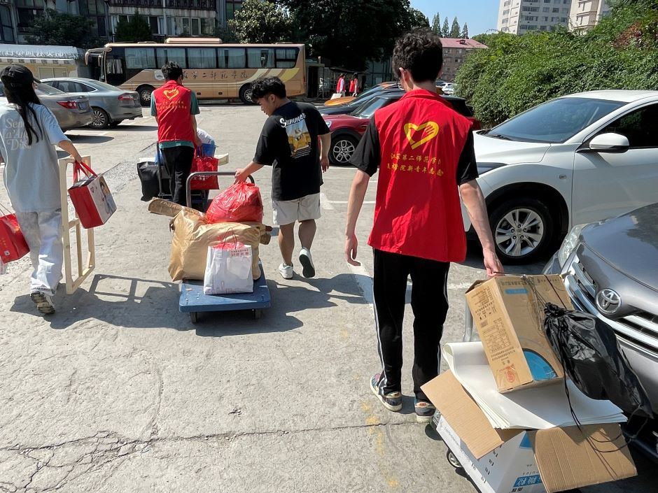 6月20日至23日,美术学院学生党支部响应号召,组织开展“我为群众办实事”志愿服务活动。因疫情防控期间校外车辆和人员不能入校,2021届毕业生在离校搬运行李的过程中出现了困难。在毕业生离校的几天时间里,党员和积极分子们不畏艰难、不惧酷暑,协助毕业生整理行李,并帮他们把行李运送到校门口家人或快递员的车辆中。哪里有需要,哪里就有党员和积极分子的身影,红色的志愿者马甲俨然成为了毕业季一道亮丽的风景线。