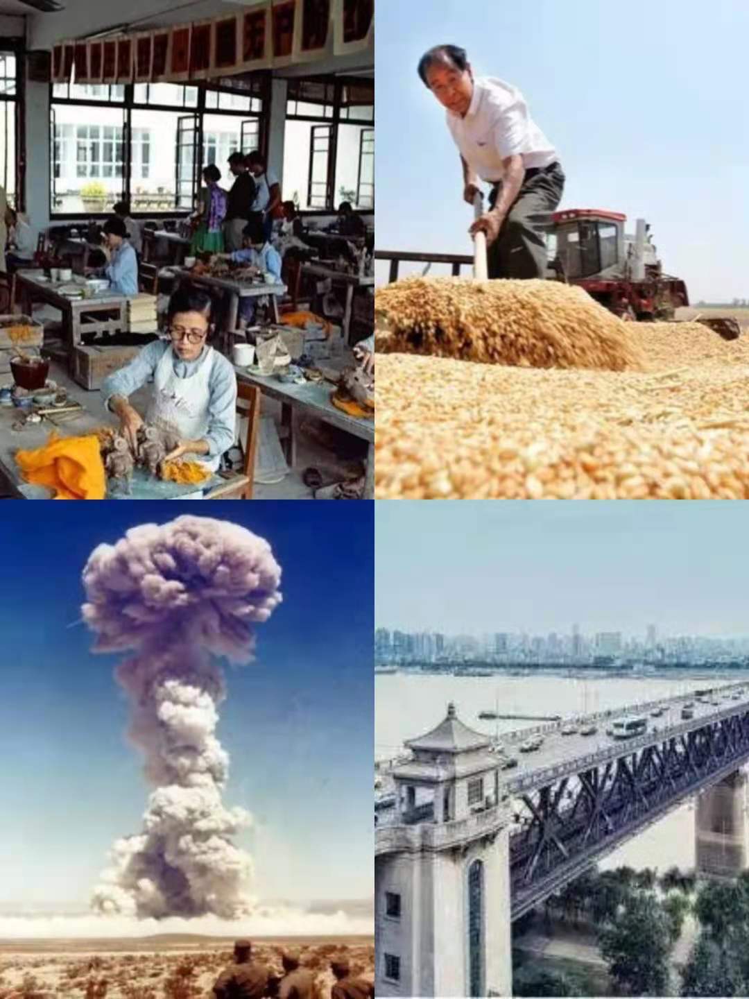自行设计和批量生产的汽车、飞机、坦克,建成武汉、南京长江大桥、大庆油田世界首次实现人工合成牛胰岛素,成功研制“两弹一星”……披荆斩棘30年。