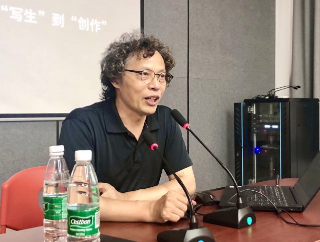 “江南仲夏天,时雨下如川”,报告厅外不知不觉下起了雨,然而陆教授精彩的发言让各位参会的老师们仿佛忘记了天气的变化与时间的流逝。“吟罢清风起,荷香满四邻”,讲座结束后,陆教授又和各位老师进行了探讨交流,老师们一致认为这次讲座帮大家理清了创作思路,是一次整体创作思想观念上的提高,有太多值得大家学习的地方,希望以后有机会能在陆教授的带领下进行采风、创作等活动。