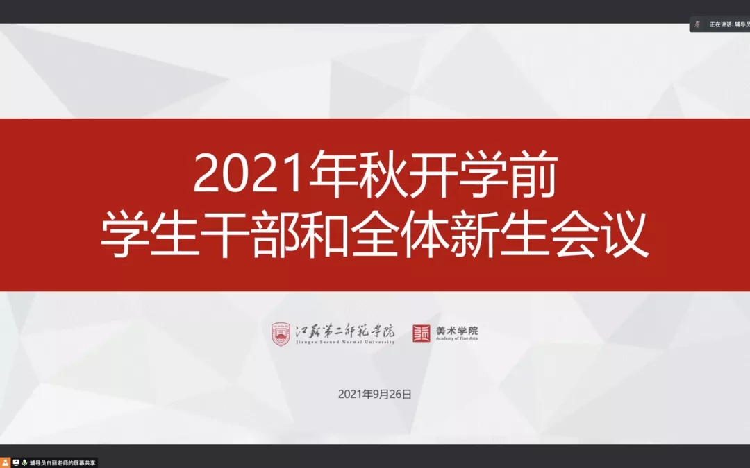 9月26日,美术学院学工办召开2021年秋开学前老生学生干部和全体新生会议,会议中,辅导员详细介绍了老生返校和新生报到事宜,以及疫情防控期间在校学生管理规定。
