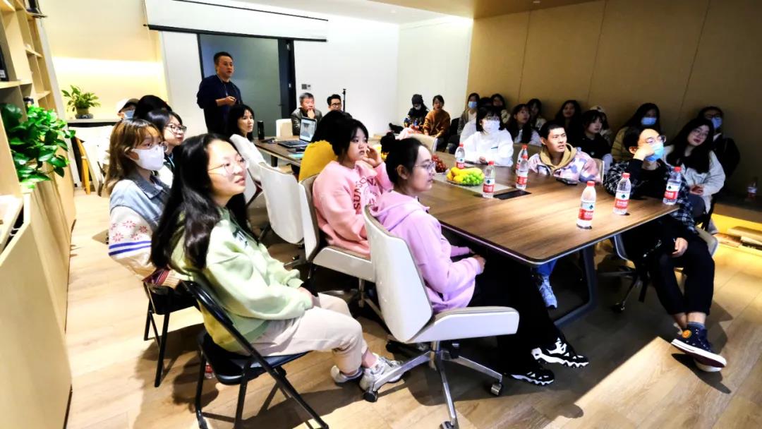 考察交流过程中,大颂博览高级合伙人、董事品牌体验设计导师、江苏第二师范学院美术学院校外导师王育松先生通过分享他们的设计案例,向同学们传授设计经验。王育松先生认为在设计中“让故事立体起来,有趣才是王道”。而策展的大纲如同剧本,策展文章如同台词,展览结构如同电影叙事线索。我们所要做的就是将原本杂乱无章的东西通过设计,将其有序化、观赏化。