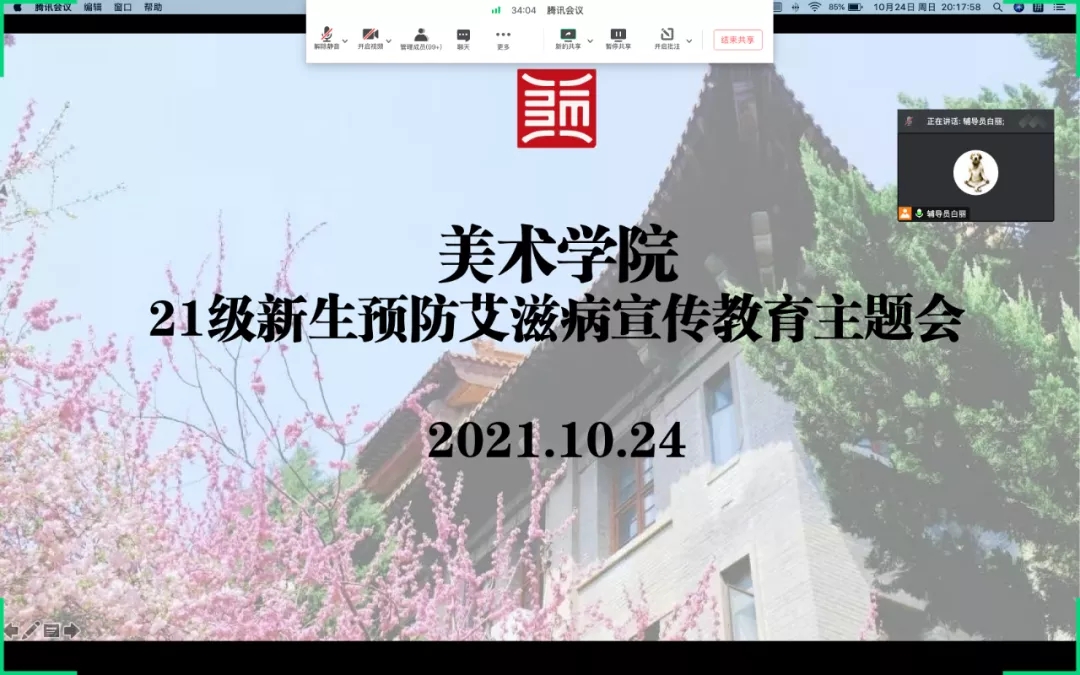 为提高同学们的艾滋病预防意识,使广大师生对艾滋病有更多了解,增强防艾意识,进一步宣传与普及防治艾滋病知识,2021年10月24日,美术学院组织21级新生开展线上“预防艾滋病宣传教育”讲座。