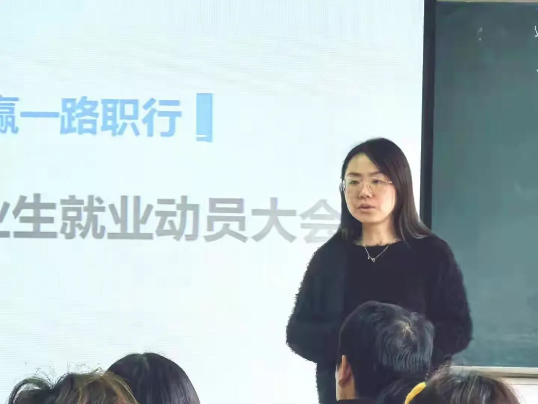 会议伊始,党总支副书记孙仕荣主要围绕两个核心点做动员话:“一:思想上要重视,政策上要熟悉,希望同学们要做好前期准备,早筹划早行动,不准打无准备之仗;二:行动上要积极,选择上要灵活,告诫同学们要积极行动起来,抓住一切机会,依据当前的严峻形势,灵活选择,先就业再择业。