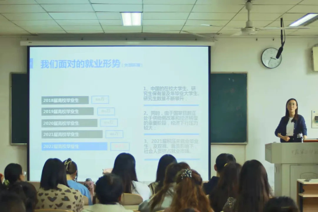 最后,美术学院辅导员章砚文从就业心态、简历制作、求职技巧和签约就职四个部分进行了讲解,并要求毕业生要积极主动、明确目标、主次分清、不怕挫折,重视简历的作用,掌握就业技巧,持之以恒,坚持不懈,维护自身权益,避免掉入求职陷阱。